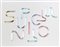 Dieci lettere della serie "Neon". Venini, Murano, 1984. Canna in vetro soffiato trasparente curvata a caldo con filo in vetro policromo sommerso. Firmate a punta. (misure diverse) (lievissimi difetti)