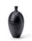 Vase with narrow neck, in opaque black blown glass, bevelled on the external surface with deep horizontal incisions. Murano, 2002. Signed and dated under the base. (h 27 cm.)