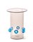 Vaso cilindrico con orlo allargato, in vetro soffiato trasparente ametista chiarissimo con sei bugne sferiche in vetro blu trasparente applicate a caldo e soffiate dall'interno. Esecuzione Salviati, Murano, 1968ca. Firmato a punta sotto la base; etichetta adesiva alla base. (h cm 21)