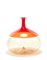 Vaso della serie "Bolle". Venini, Murano. Vetro trasparente pagliesco e rosso, disegno 502.01 del Catalogo Verde Venini. Firmato a punta sotto la base. (h cm 20)