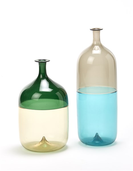 Tapio Wirkkala Lotto di due vasi della serie "Bolle". Venini, Murano. Vetro tras