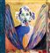 62,5x58,5 tecnica mista su legno con collages di stoffe e carte dipinte