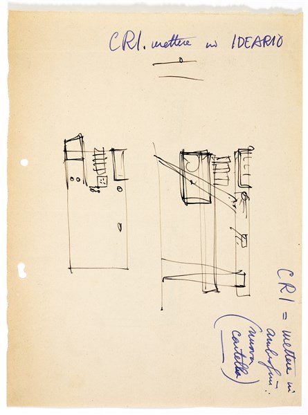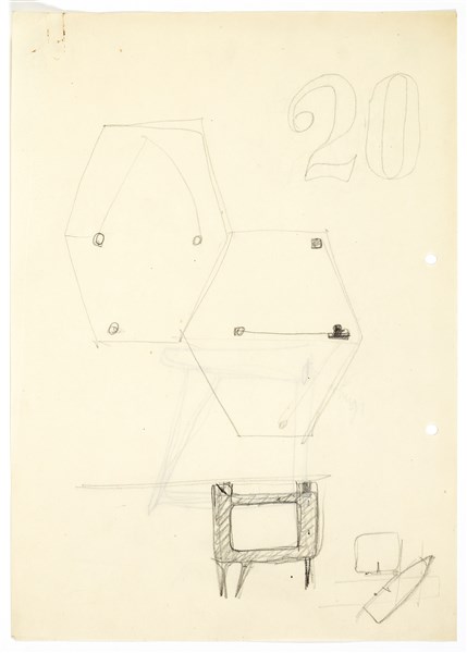 Due studi rispettivamente per una scrivania e per tavoli affiancabili con piano esagonale. Milano, anni '50. Inchiostro nero e blu, matita su carta da spolvero. Annotazioni manoscritte di pugno di Gio Ponti. Recto/verso. (cm 28,1x21; cm 29,6x21) (lievi difetti)