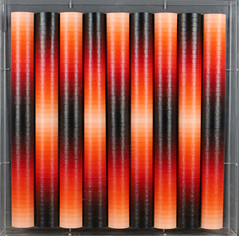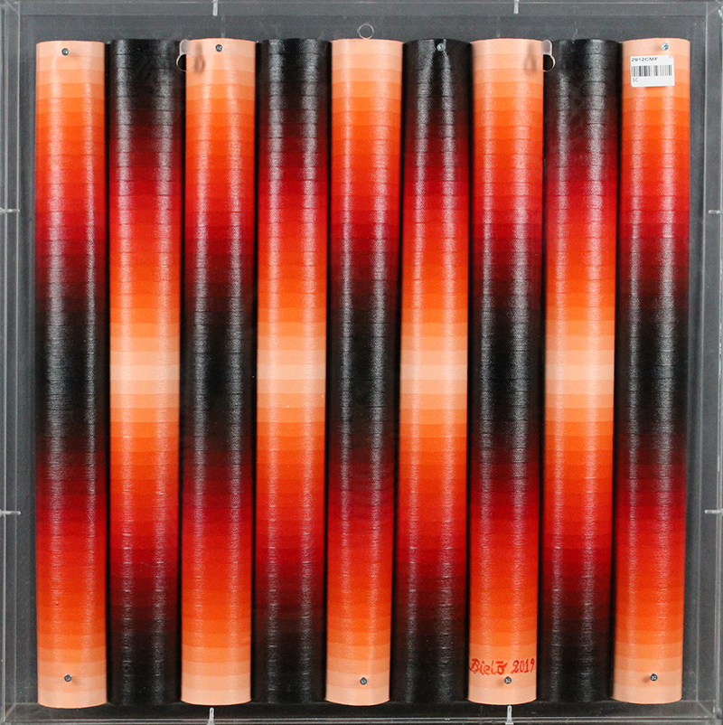 RAFFAELE BIELO', Senza titolo, 2019, Acrilico su rotoli di tela, Dim. 50x50, Opera accompagnata da autentica su foto dell'artista, Al verso datato e firmato, Opera con plexiglass leggermente scheggiato