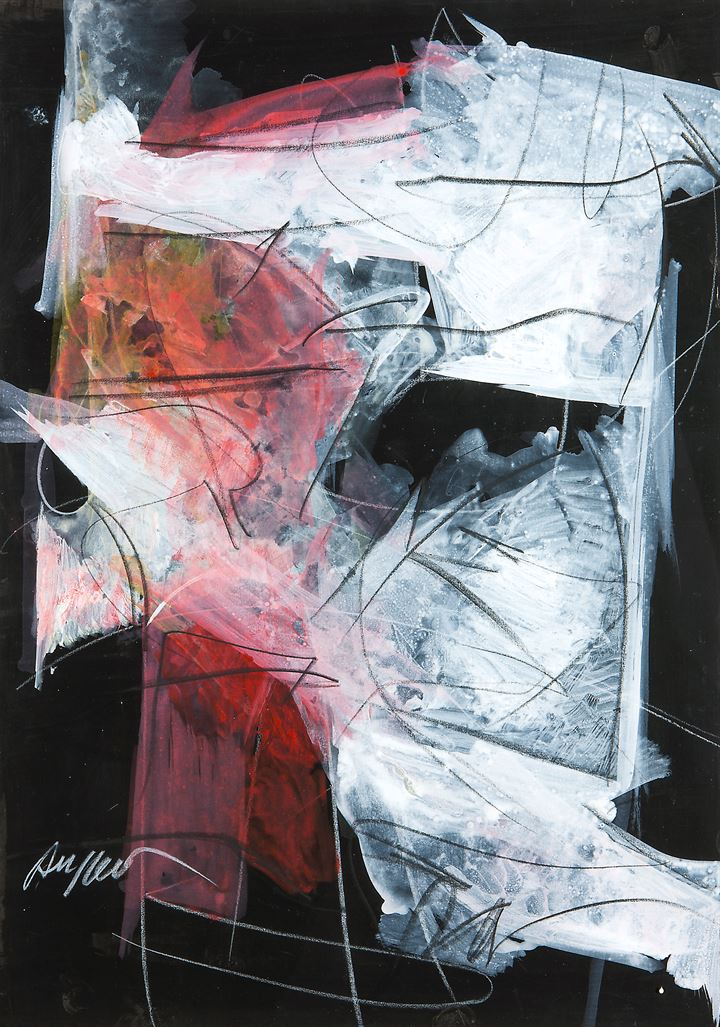 RUGGERI PIERO Torino 1930 - 2009 "Paesaggio" 50x35 tempera su carta rintelata...