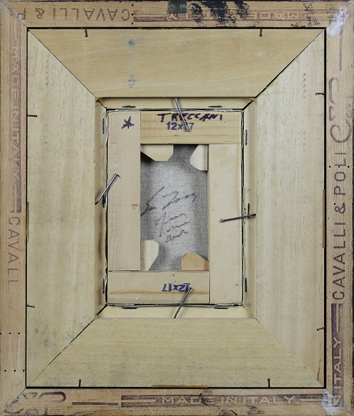 ERNESTO TRECCANI, Senza titolo, Tecnica mista su tela, Dim. 17x12, Al verso: firma, Al fronte: firmato in basso a destra, Opera con cornice