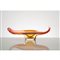Centrotavola in vetro sommerso, corpo a gondola con concavità centrale, nei toni ambra e rosso.