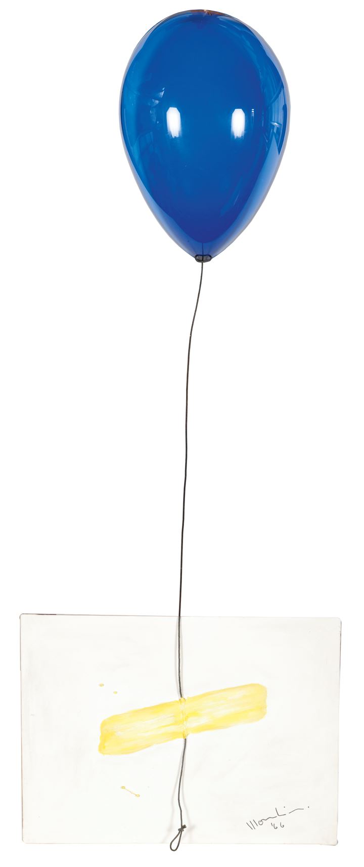 49,5x70 olio su tela con applicazione di palloncino in plexiglass blu