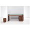 Scrivania grissinata da centro in noce nazionale, piano rettangolare in cristallo e cestino, arredamento per gli uffici Vetrocoke.