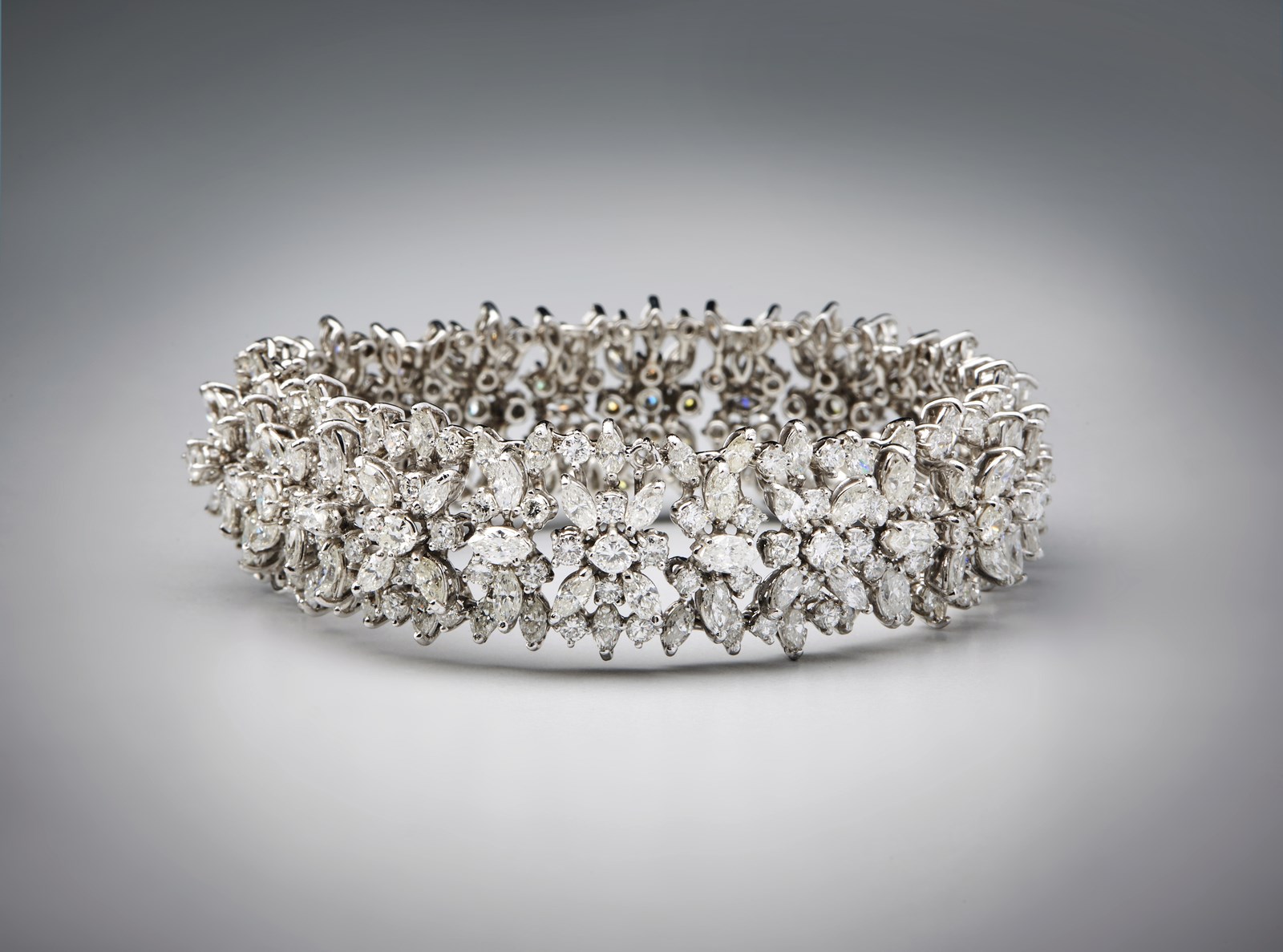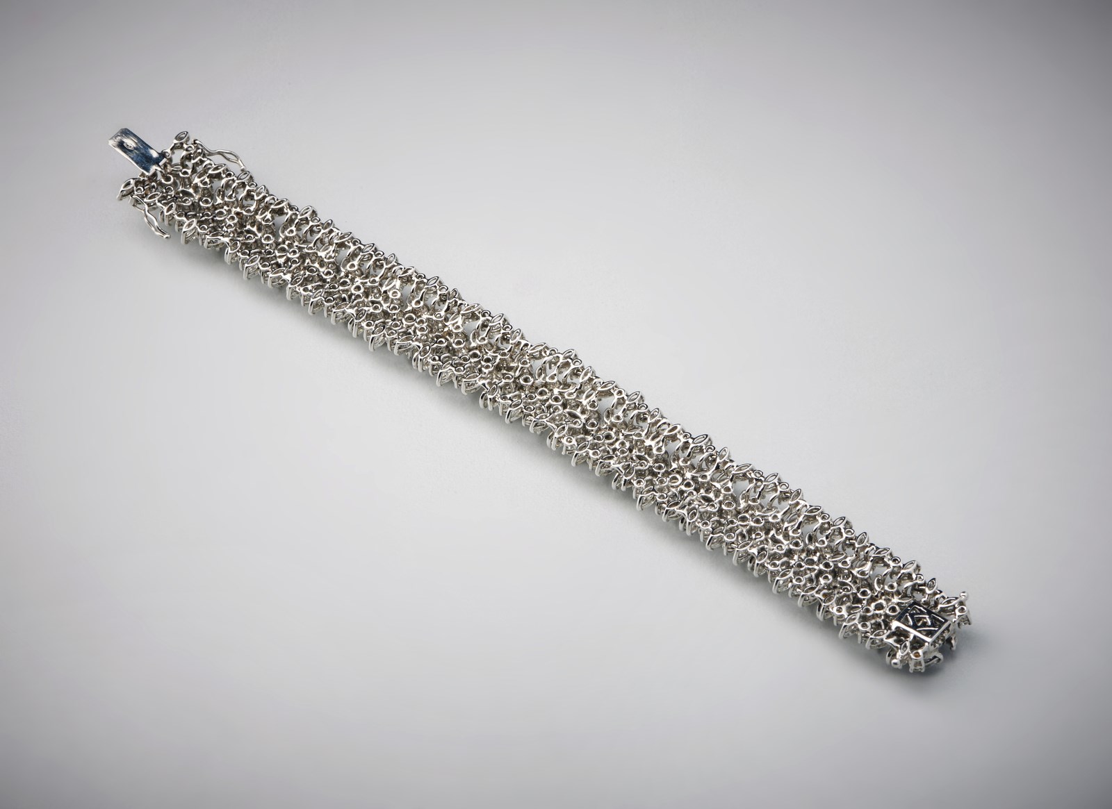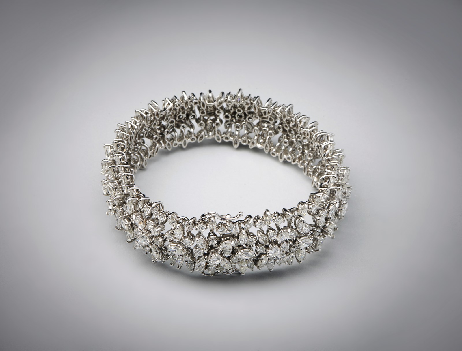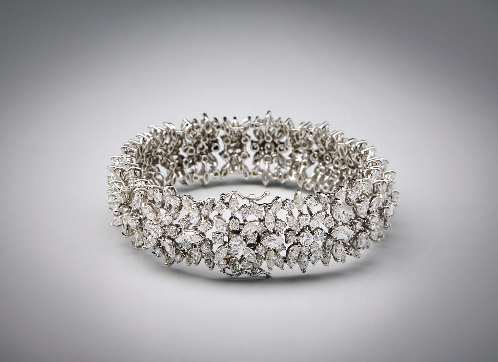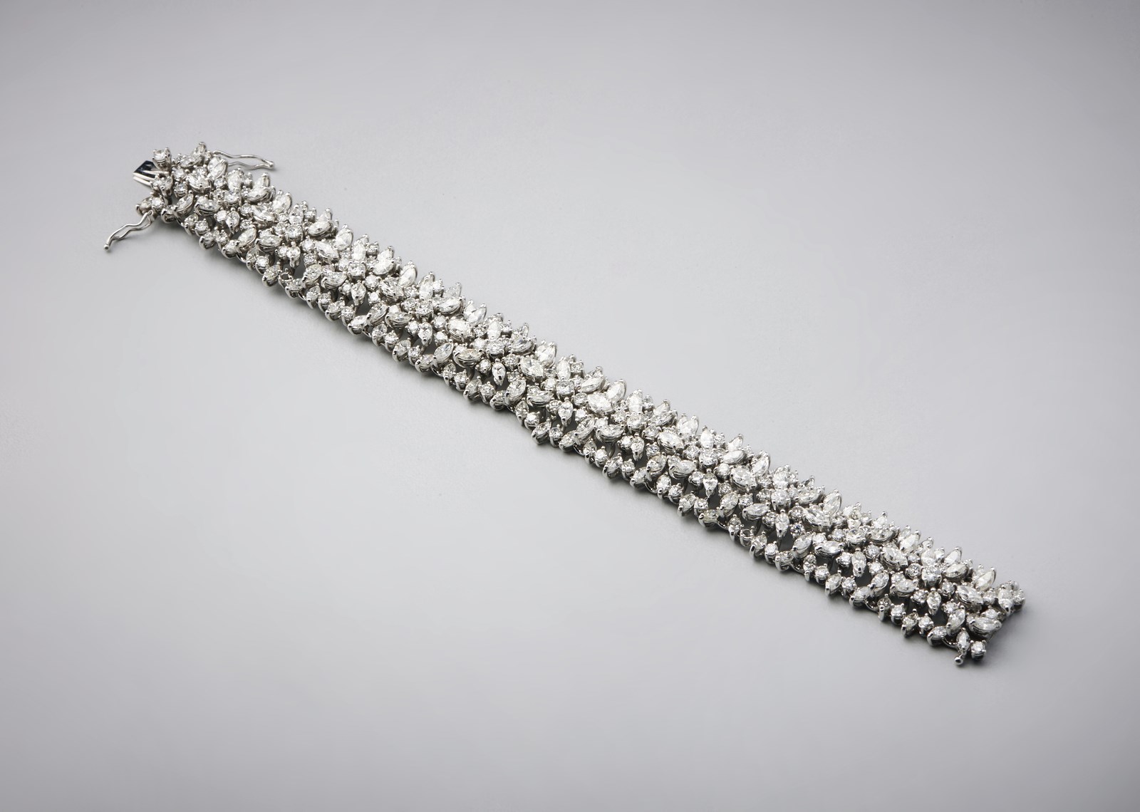 . Eccezionale Bracciale in oro bianco 750 /1000 con diamanti bianchi taglio a marquise ed a brillante per carati:totali 30,62 circa. -. . Peso lordo: 48,00 grammi