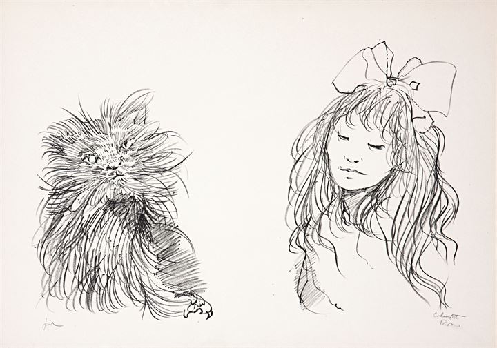 COLOMBOTTO ROSSO ENRICO Torino 1925- Casale 2013 "Fanciulla e gatto" 50x70...
