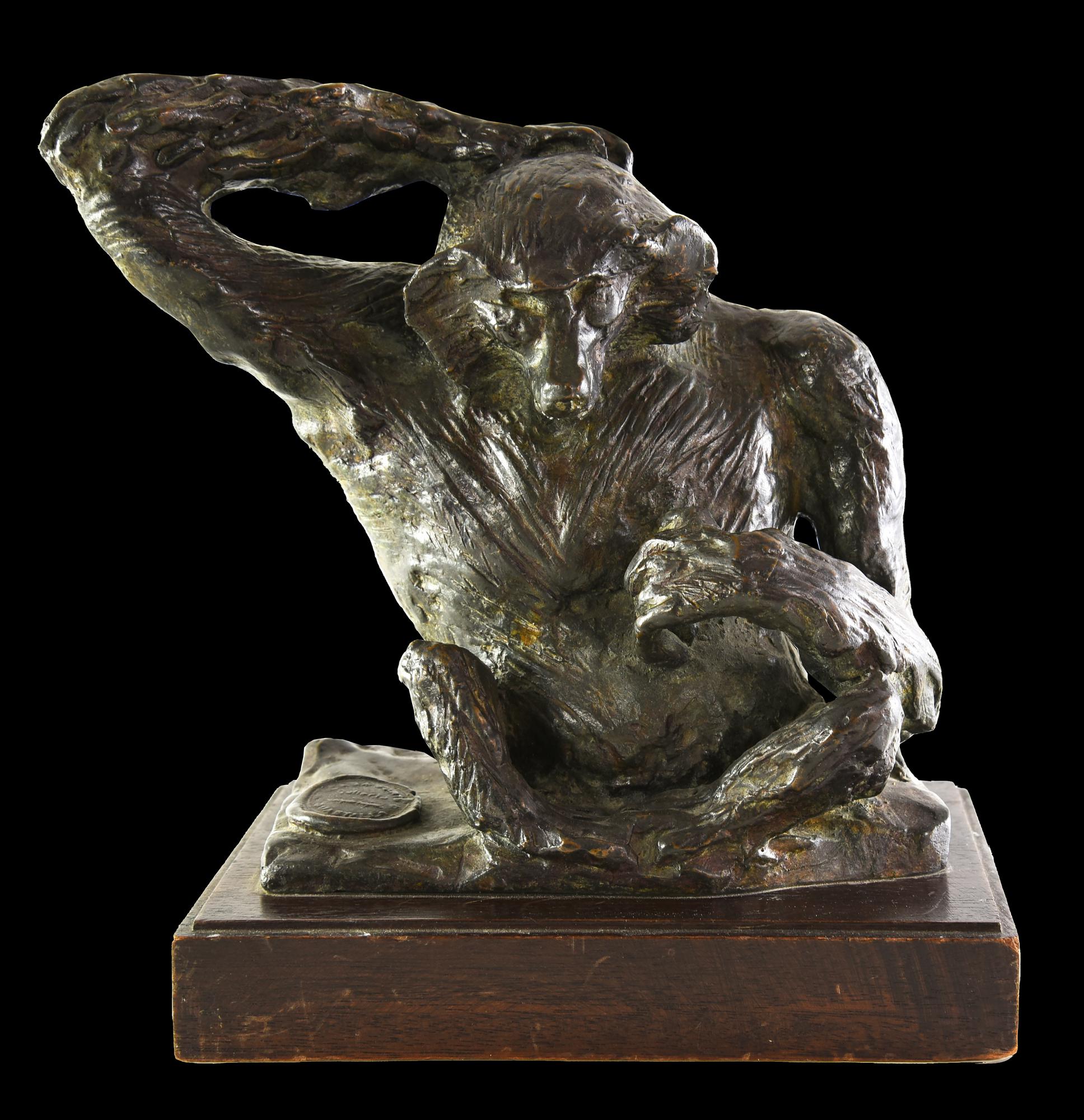 Antonio Ligabue (1899 - 1965) BABBUINO bronzo, cm 22,5x22x13; es. 15/16 sulla...