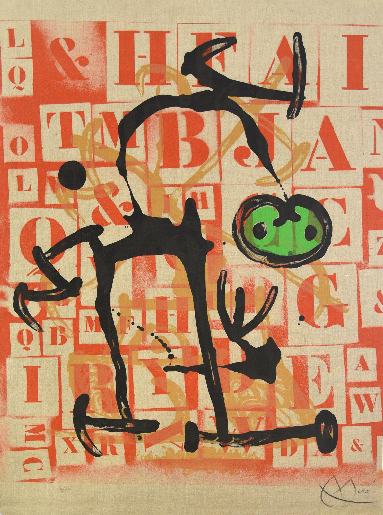 Joan Miro' (1893 - 1983) LA LETTRE VERTE litografia a colori su tela...