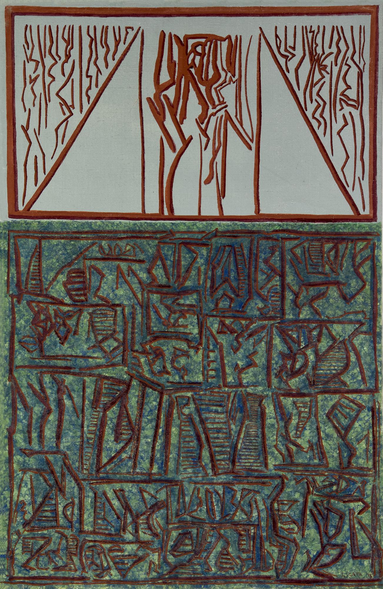 Riccardo Licata (1929 - 2014) COMPOSIZIONE olio su tela, cm 92x59,5 firma e...