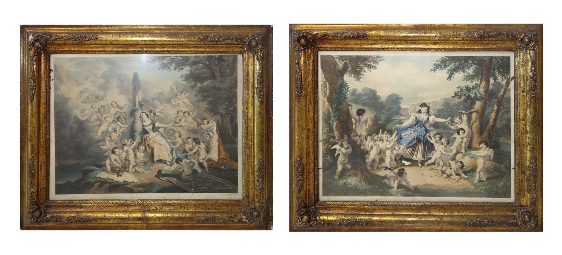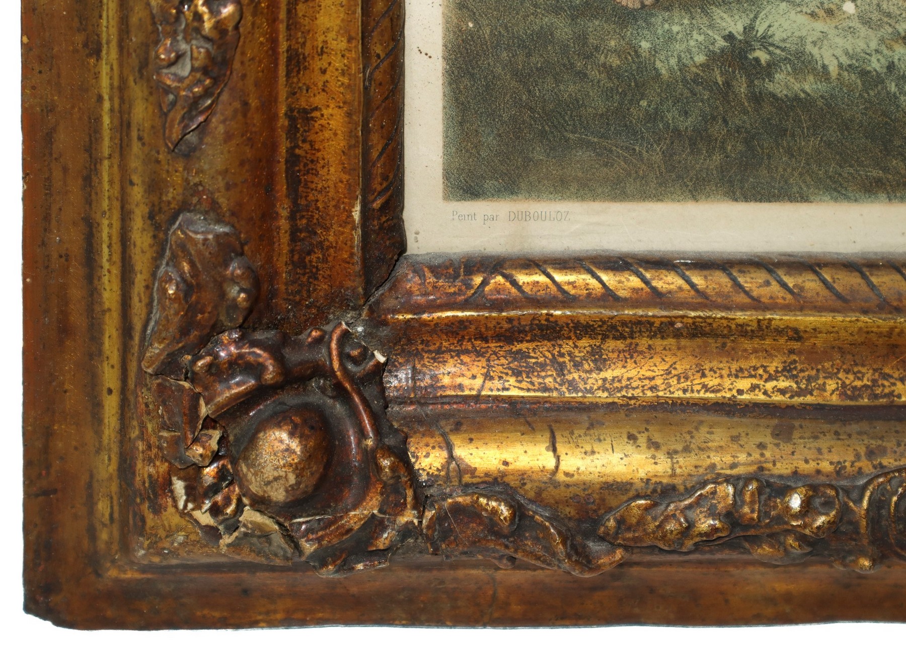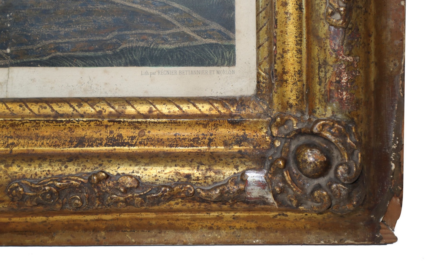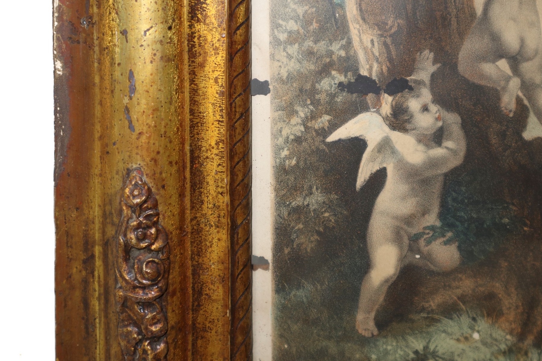 Coppia di cornici in legno dorato con stampa, second half of the 19° secolo