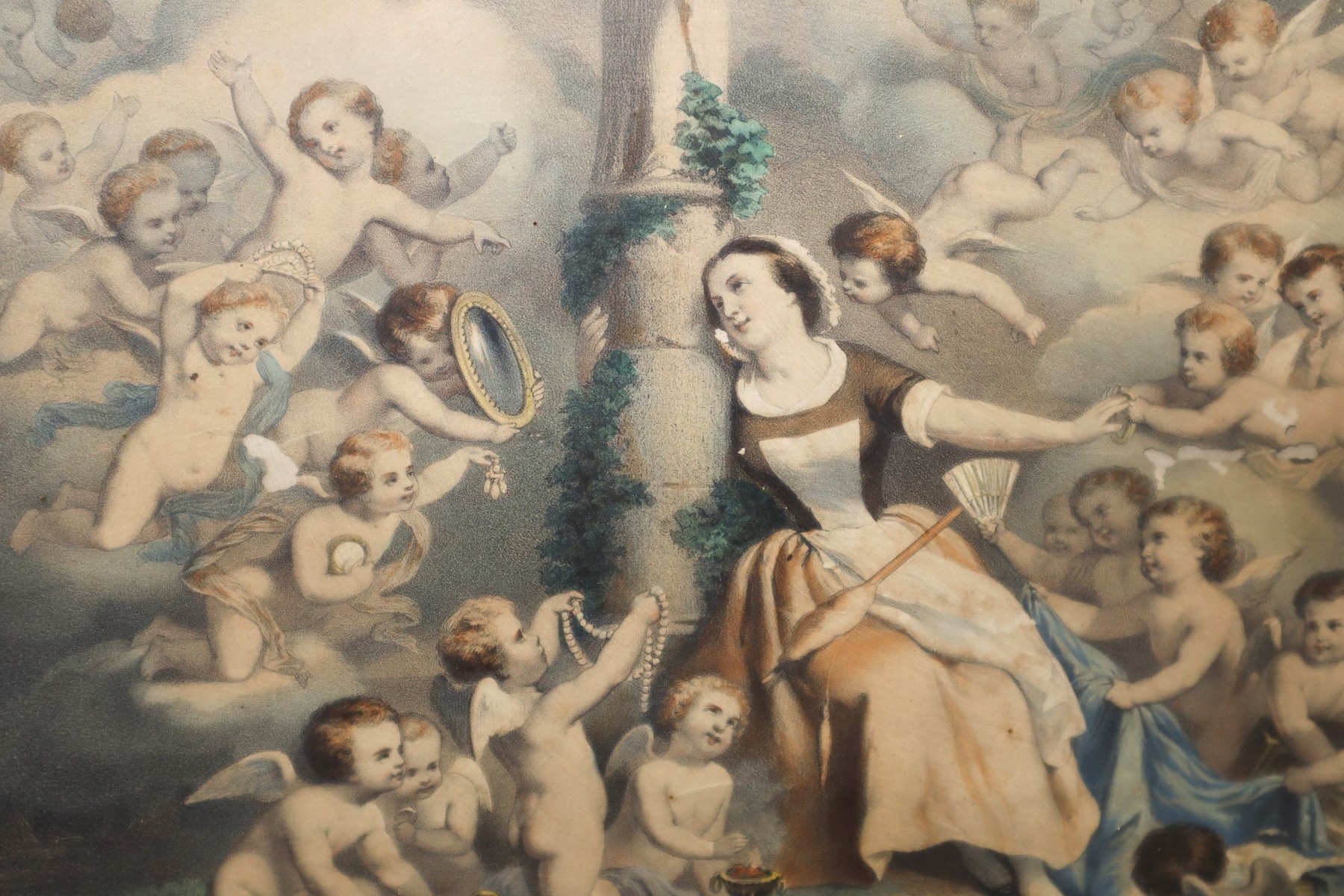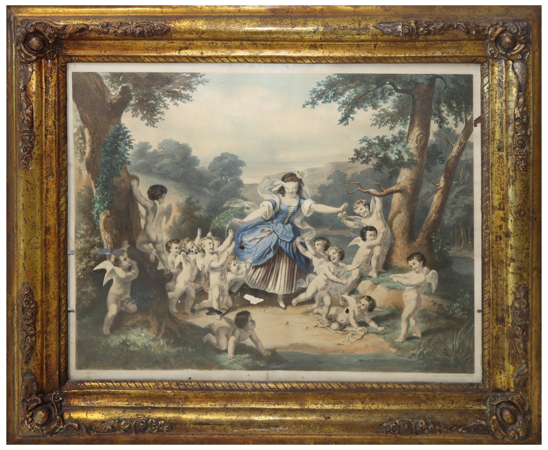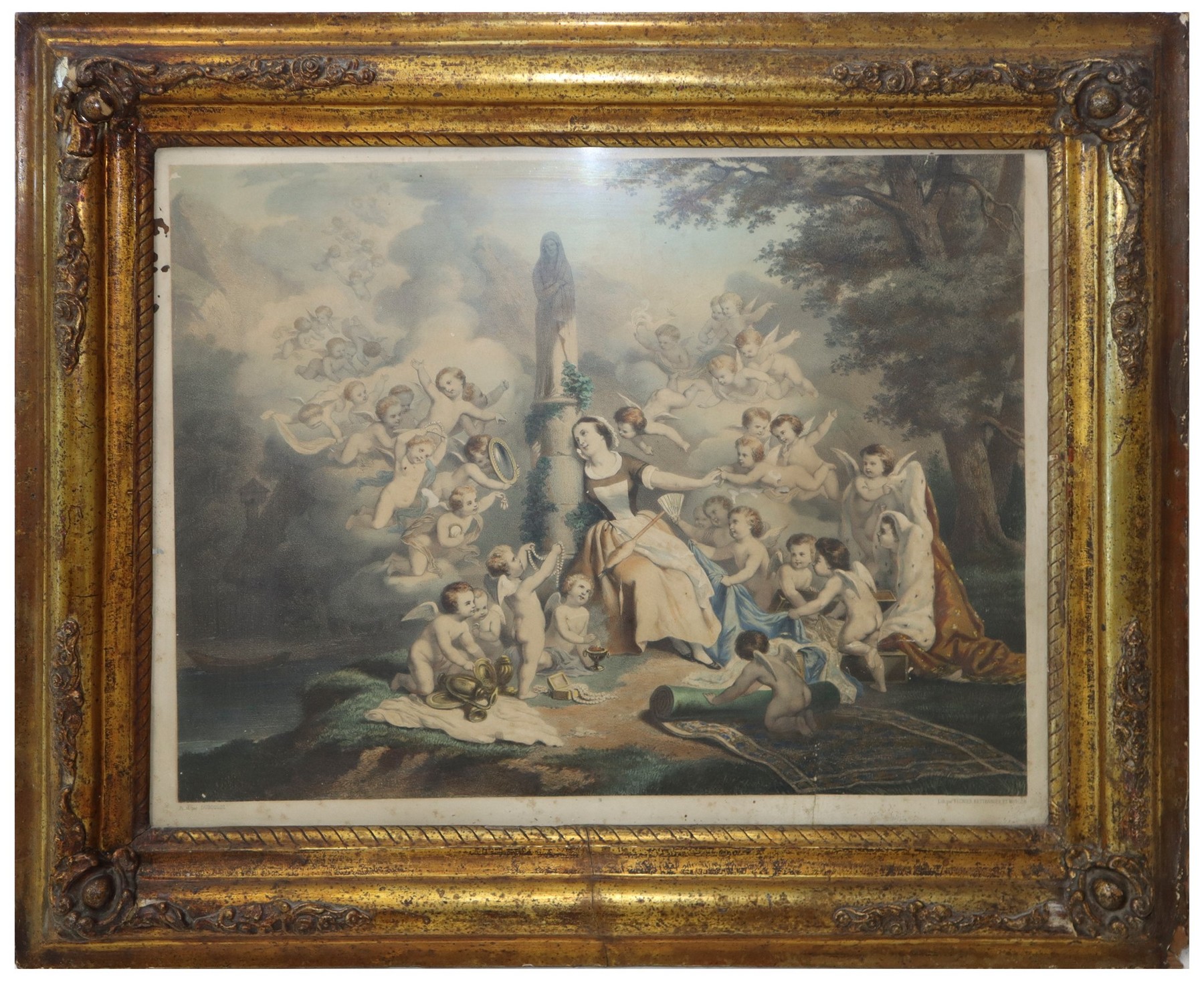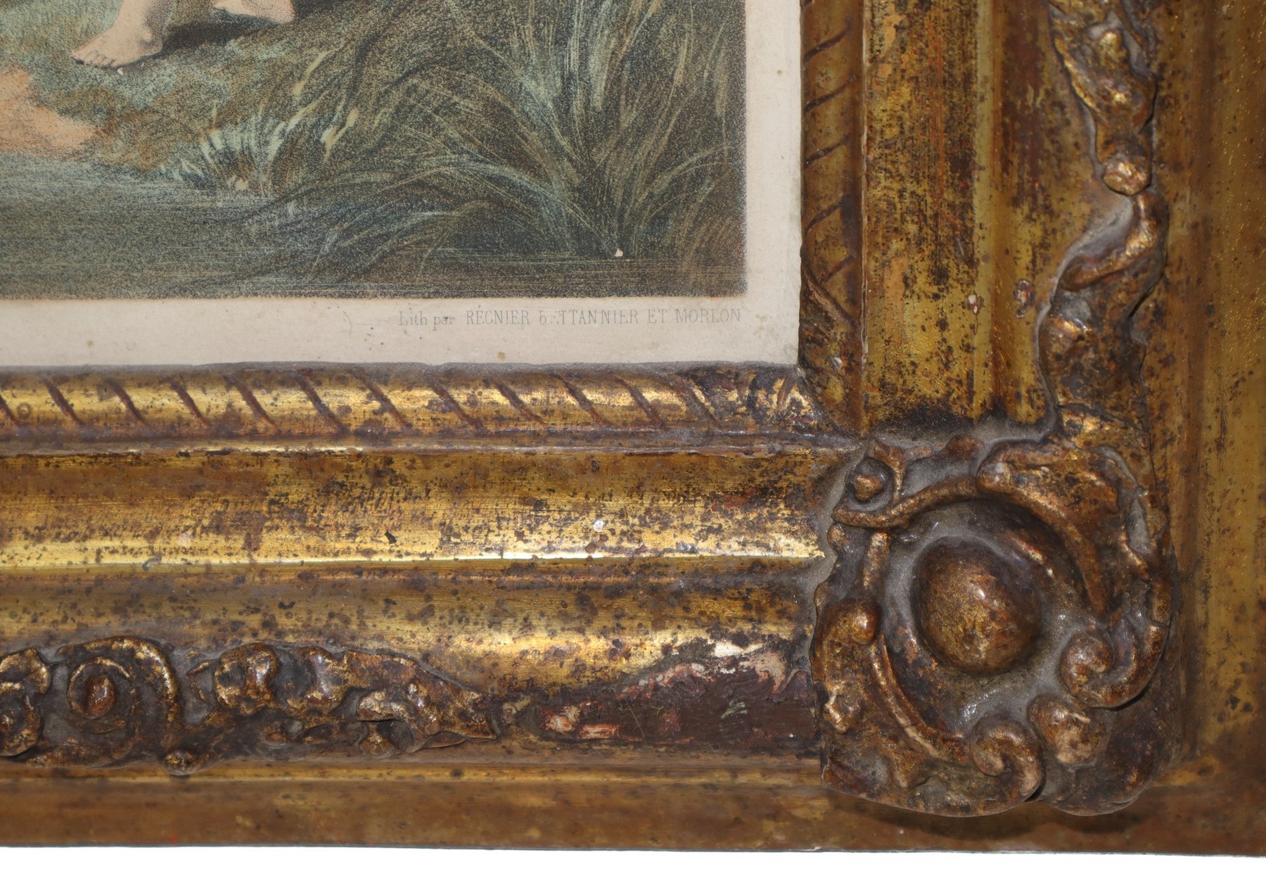 Coppia di cornici in legno dorato con stampa, second half of the 19° secolo