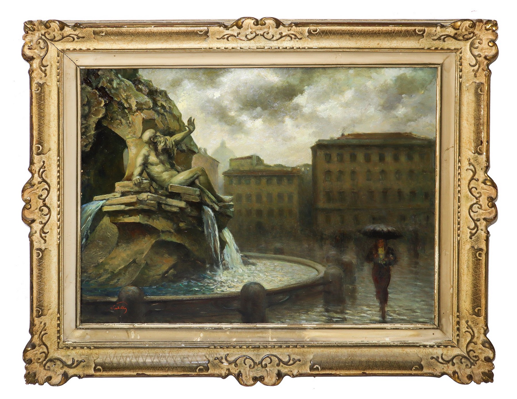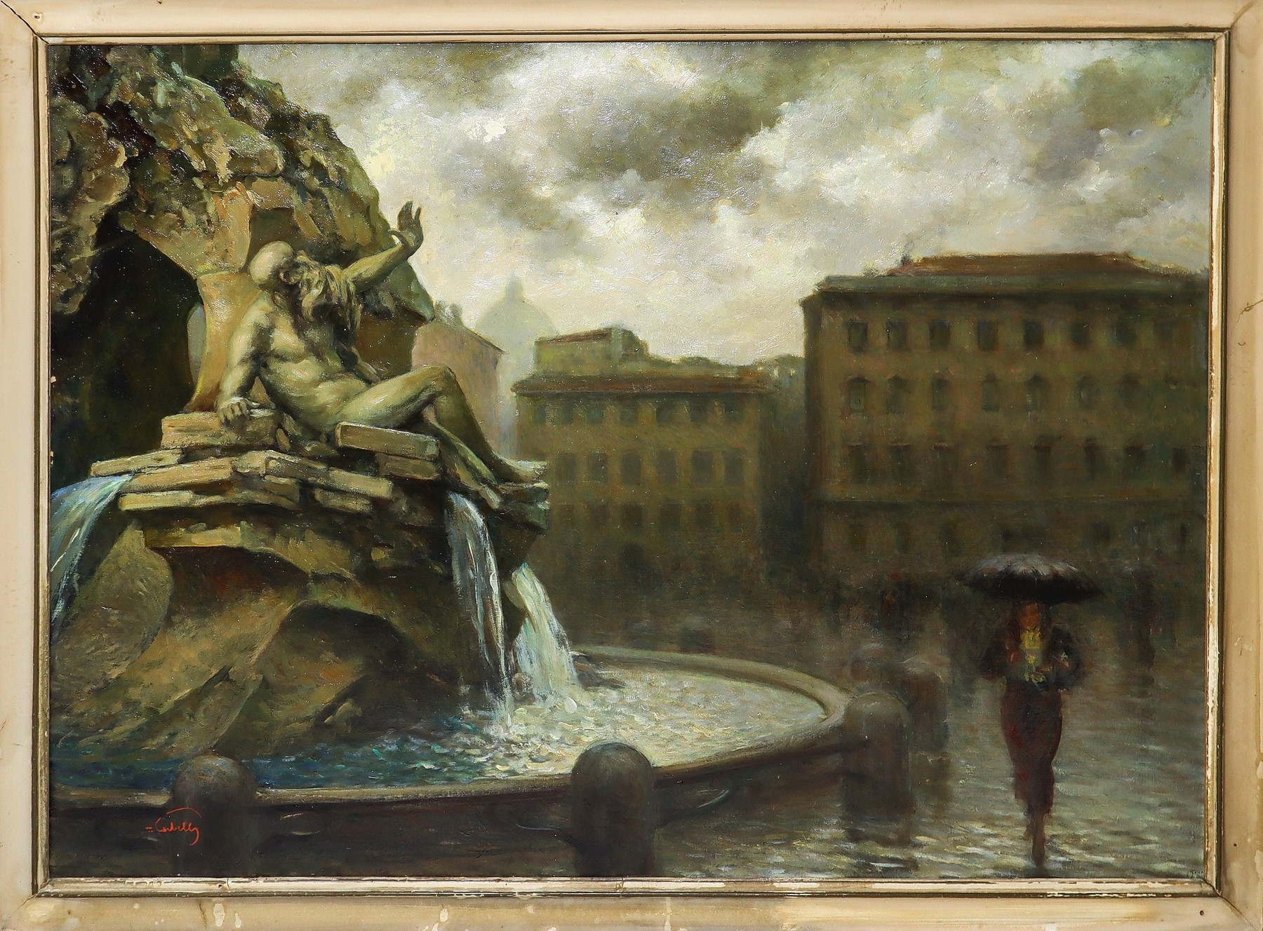 Piazza Navona, Roma. Rio de La Plata, Fontana dei Quattro fiumi del Bernini. Cm 60x80, in cornice cm 80x100 Dipinto olio su tela