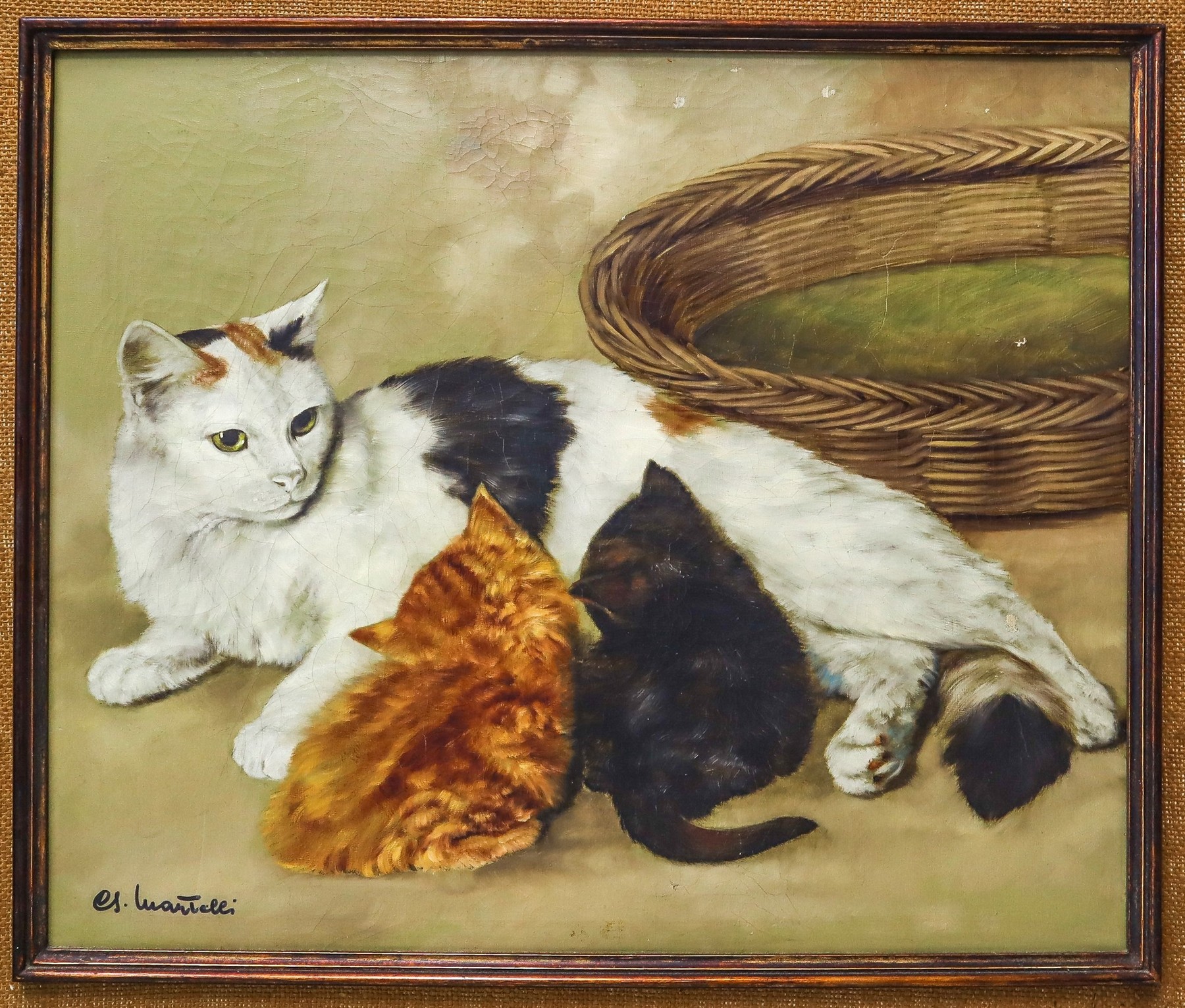 Gatti Cm 50,5x60, in cornice cm 75x85 Olio su tela Firmato G.Martelli.