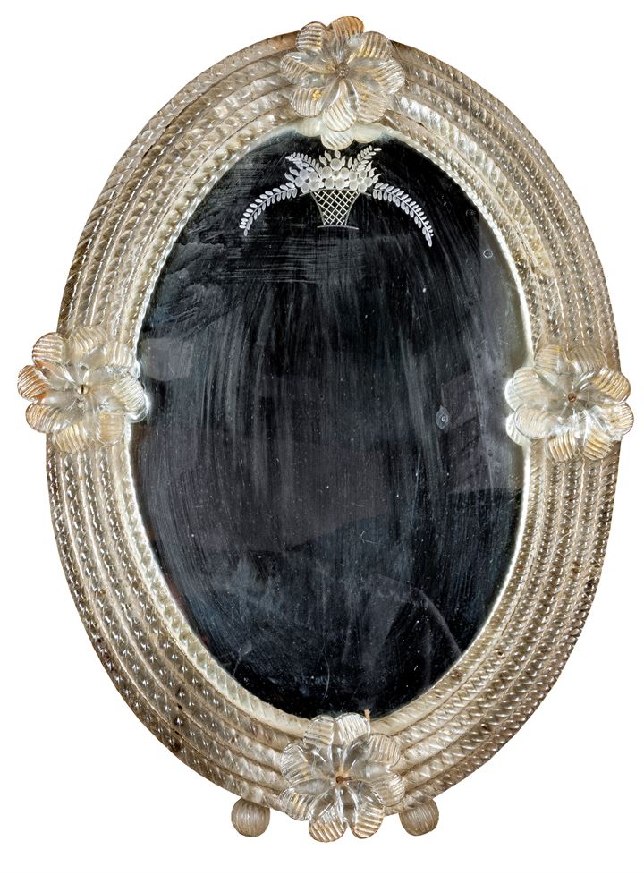 SPECCHIERA Vecchia specchiera in vetro di Murano di forma ovale, cornice a...
