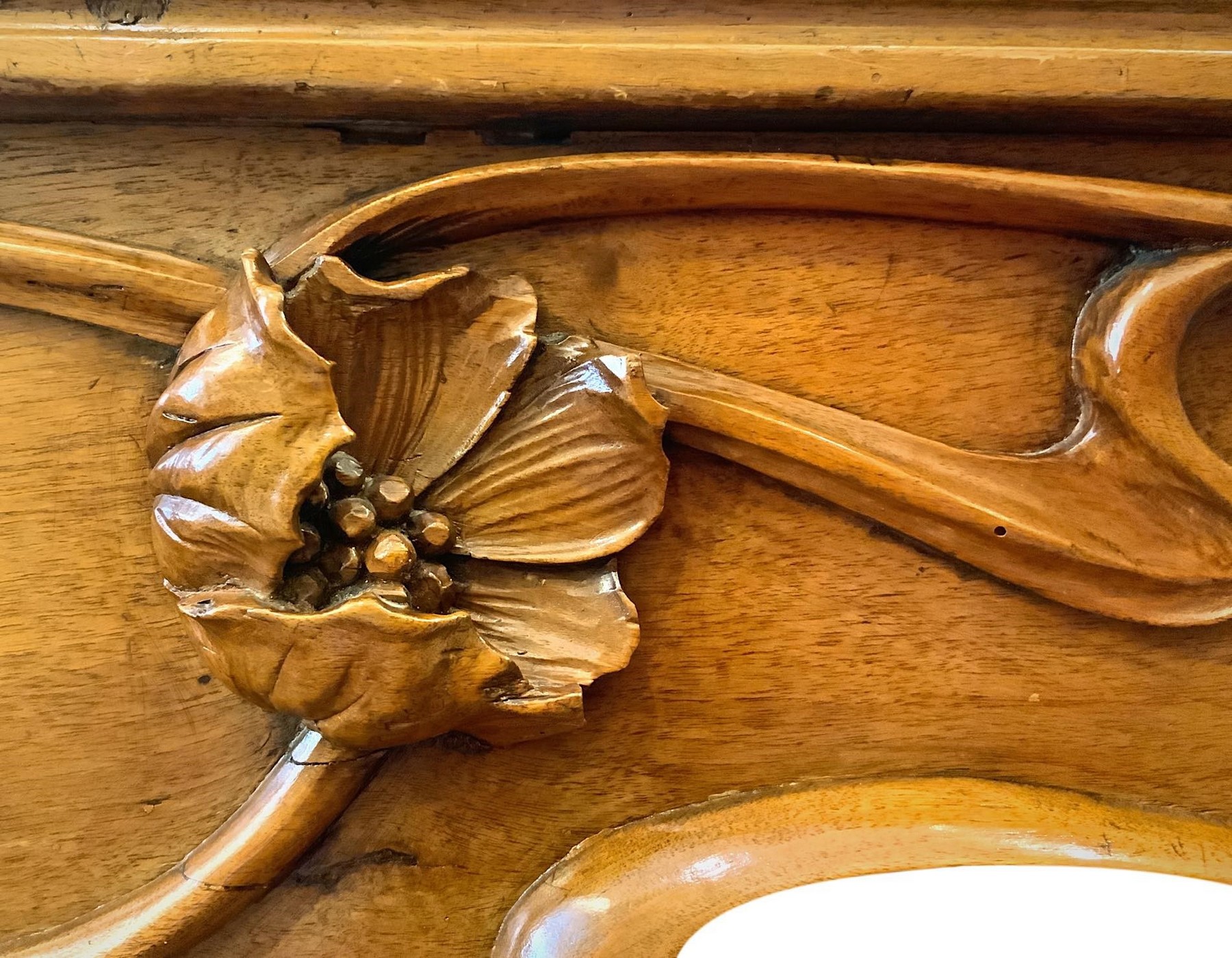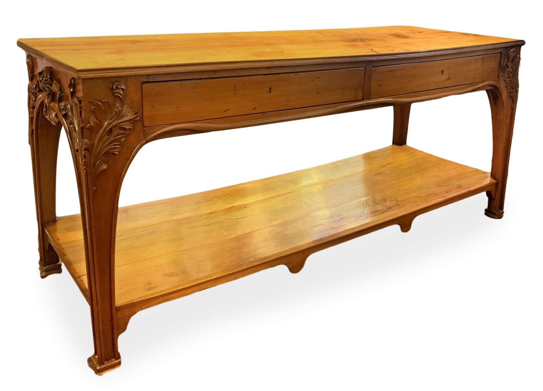 Ernesto Basile (attribuito_a) (Palermo 1857-Palermo 1932) - Pregiato tavolo da sartoria Liberty, Inizi 1900s H 216x80 cm Con intagli floreali a rilievo