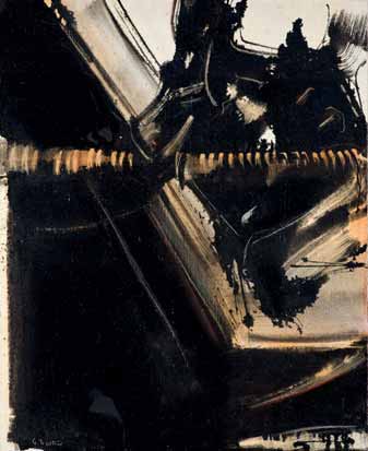 Gianni Bertini Pisa 1922 – Caen 2010 La Nemée surprise, 1960 olio su tela, cm 100x81. Firmato in basso a sinistra: G. Bertini. Firmato, titolato e datato al verso: Gianni Bertini, “La Nemée surprise” 1960 Autentica su fotografia firmata dall’artista in data: Nansola, dicembre 2006. Opera registrata presso l’Archivio Gianni Bertini con la sigla C114B7BC161874B071BD, in data: Firenze, 27 maggio 2008.