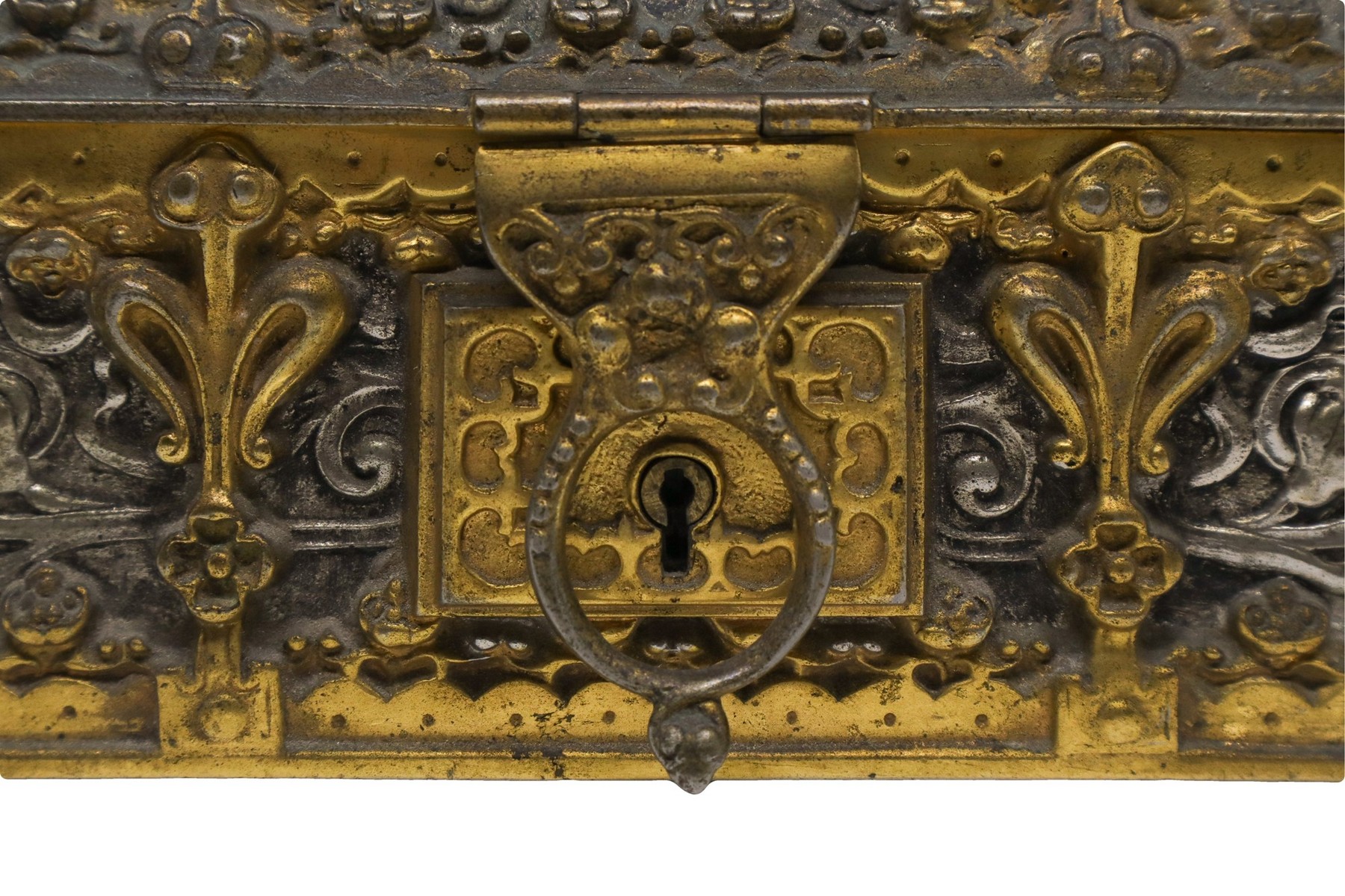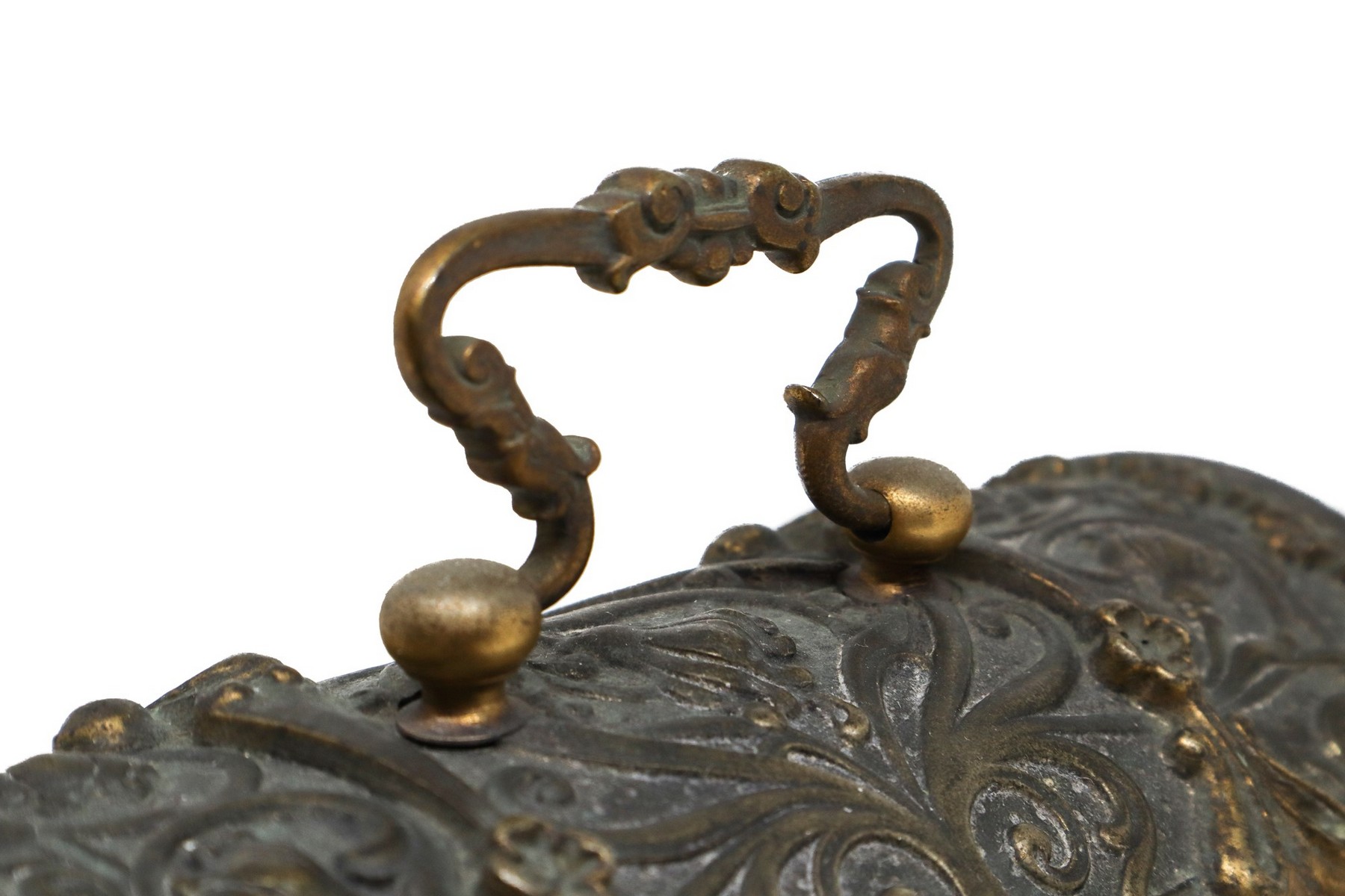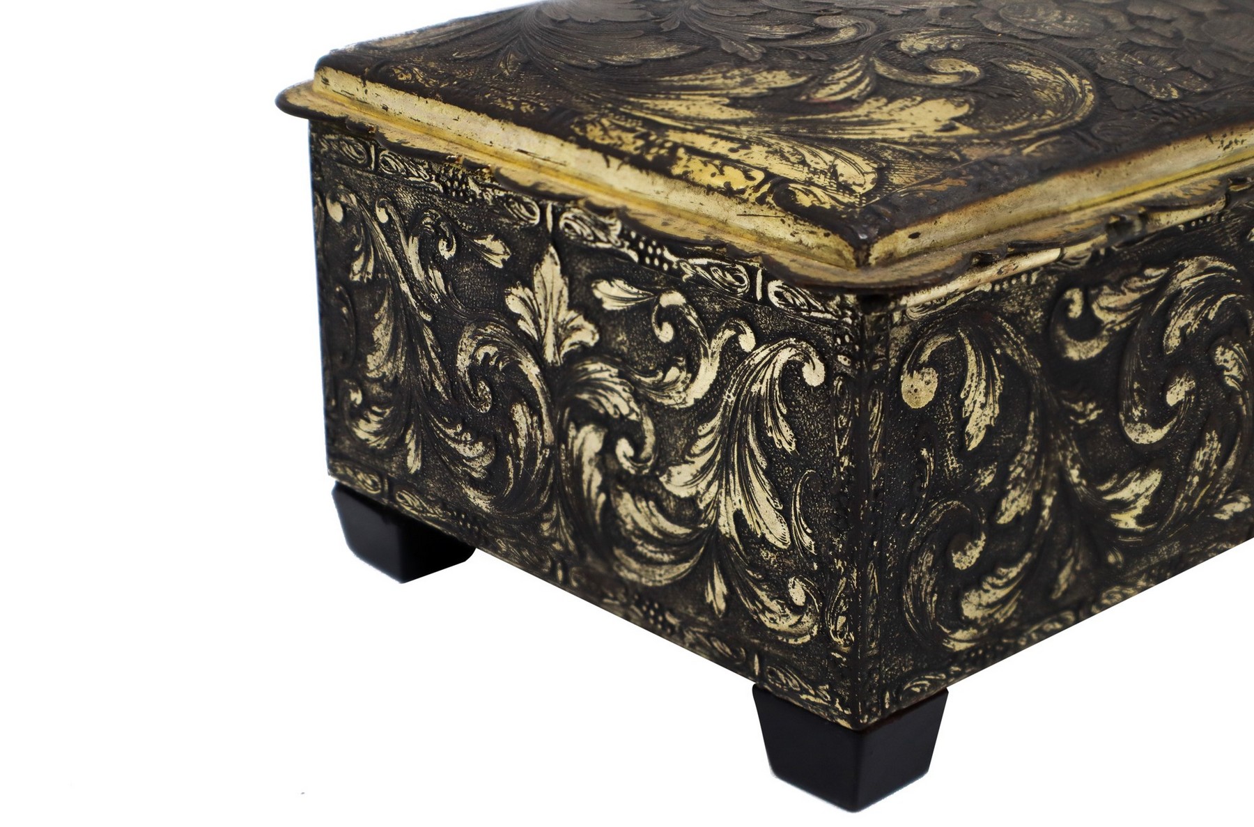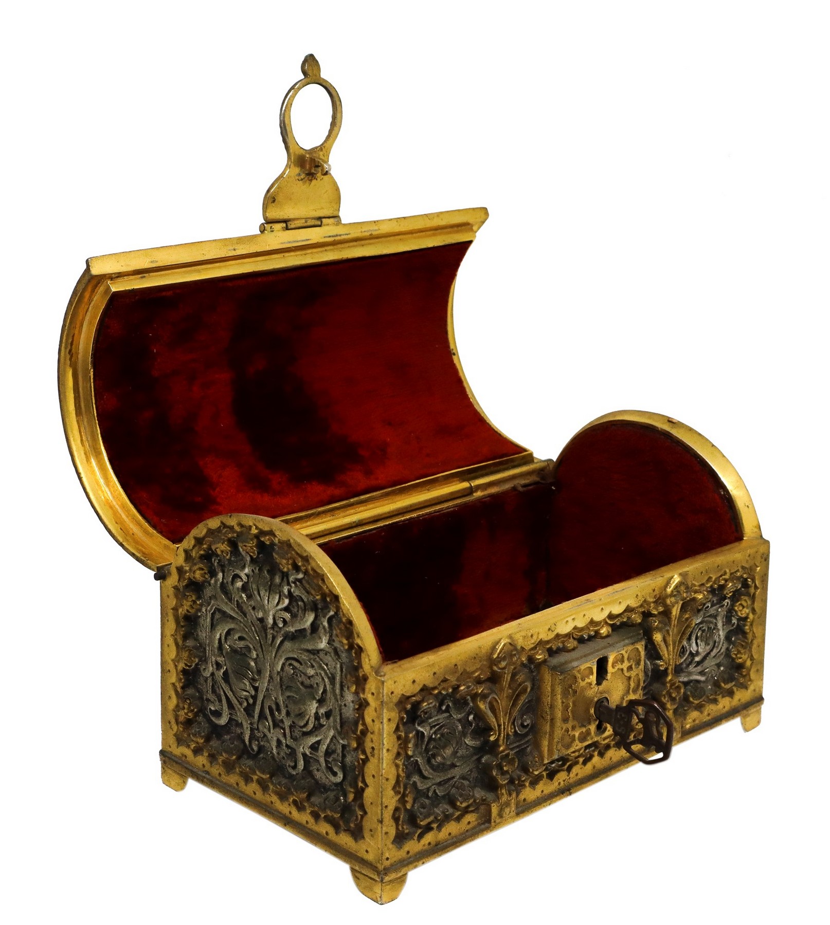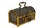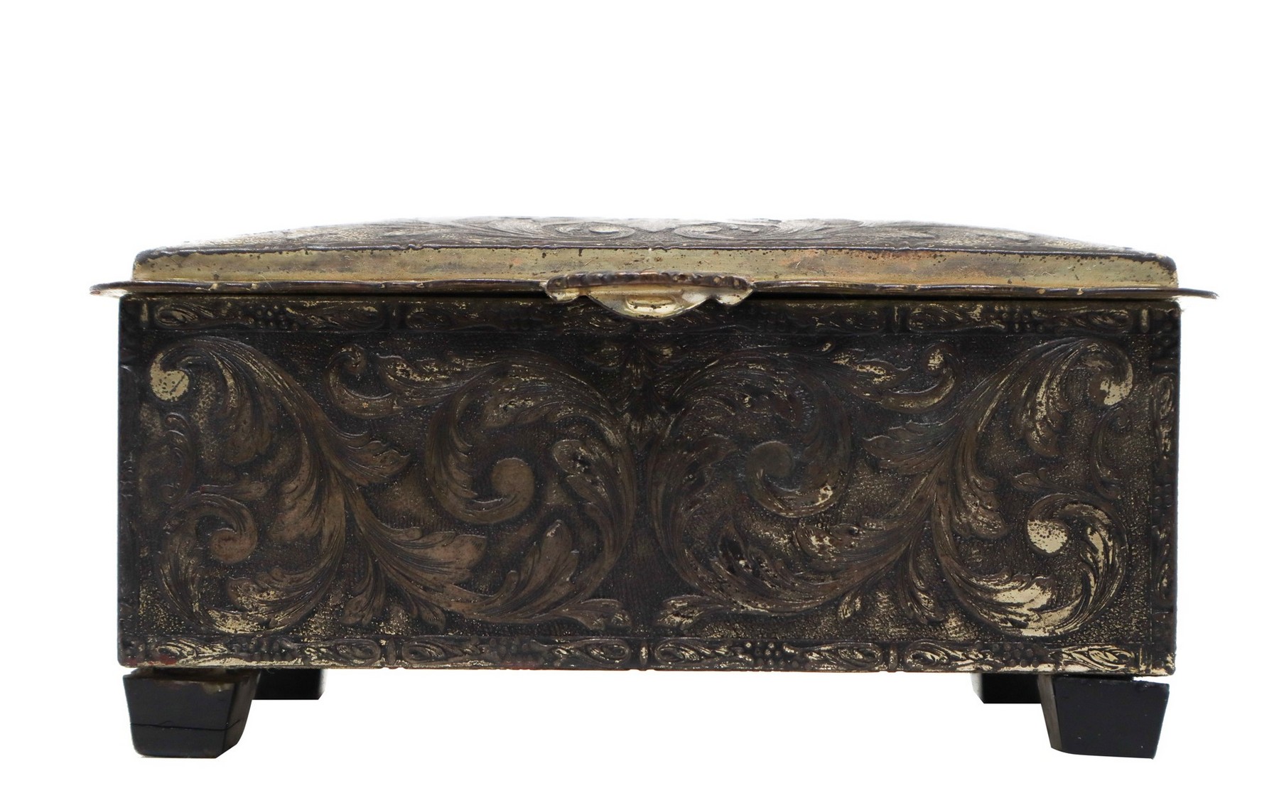 2 scatole in metallo patinato argento e oro h.6; 12x8 h.10; 16x9