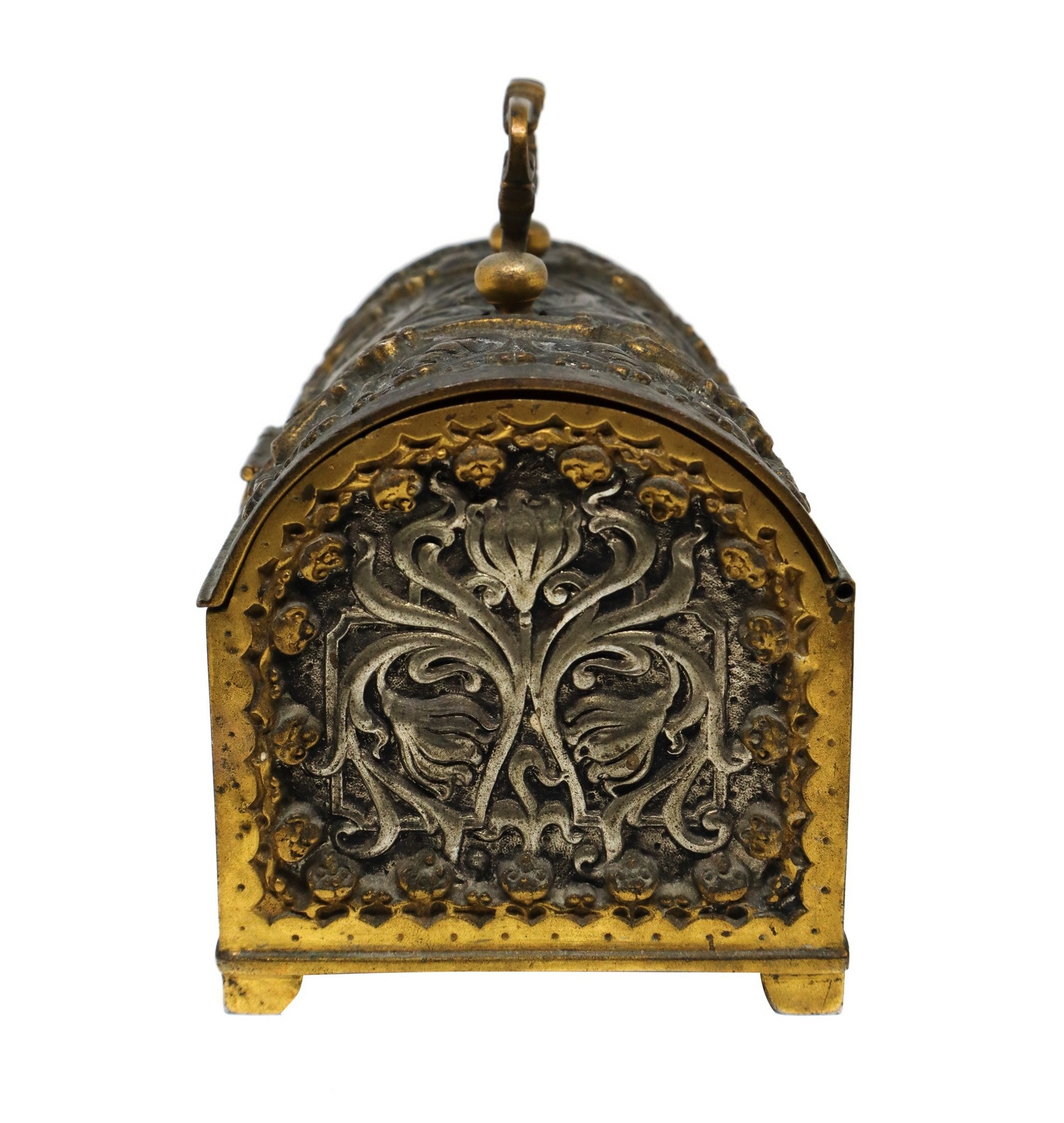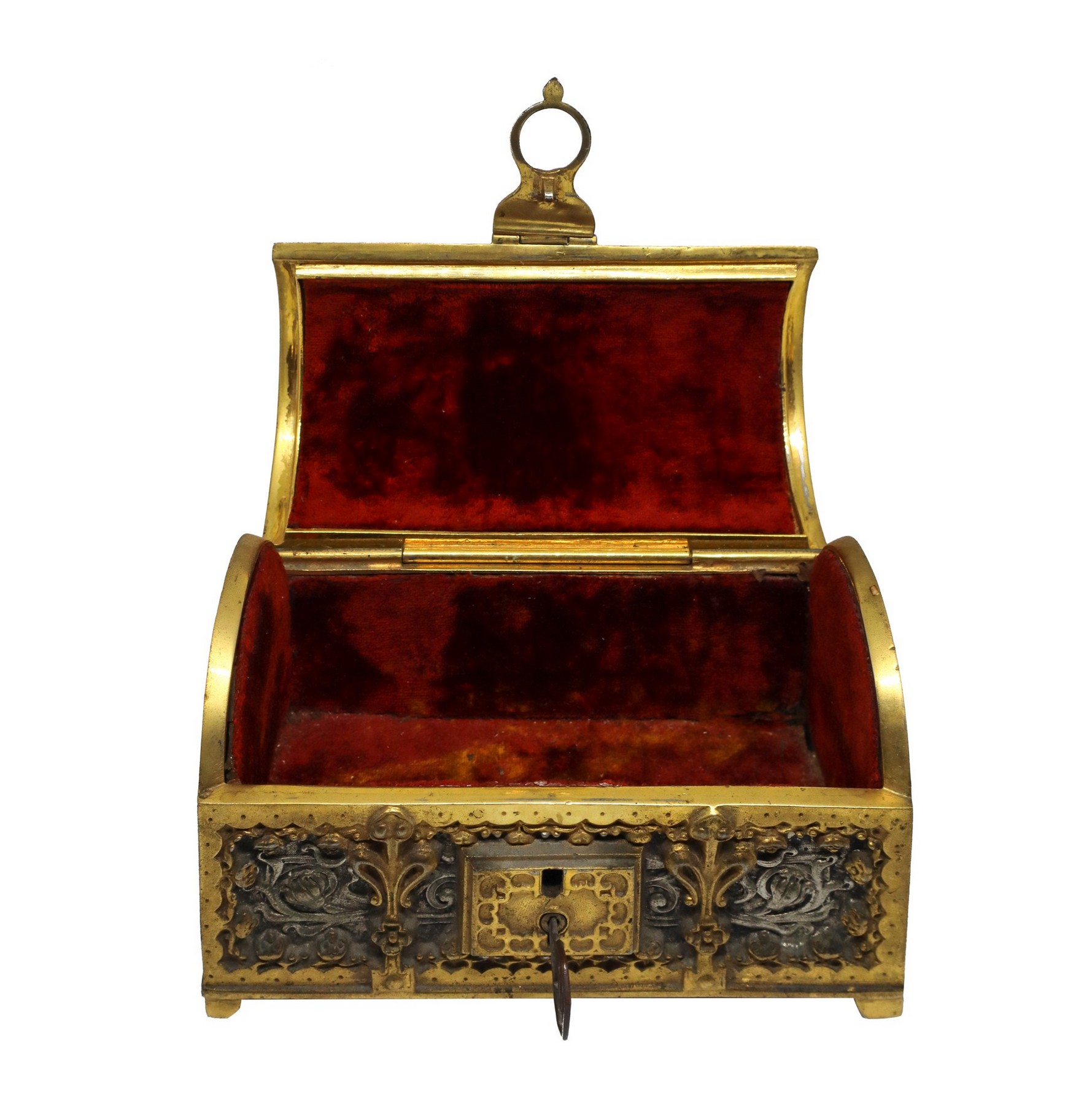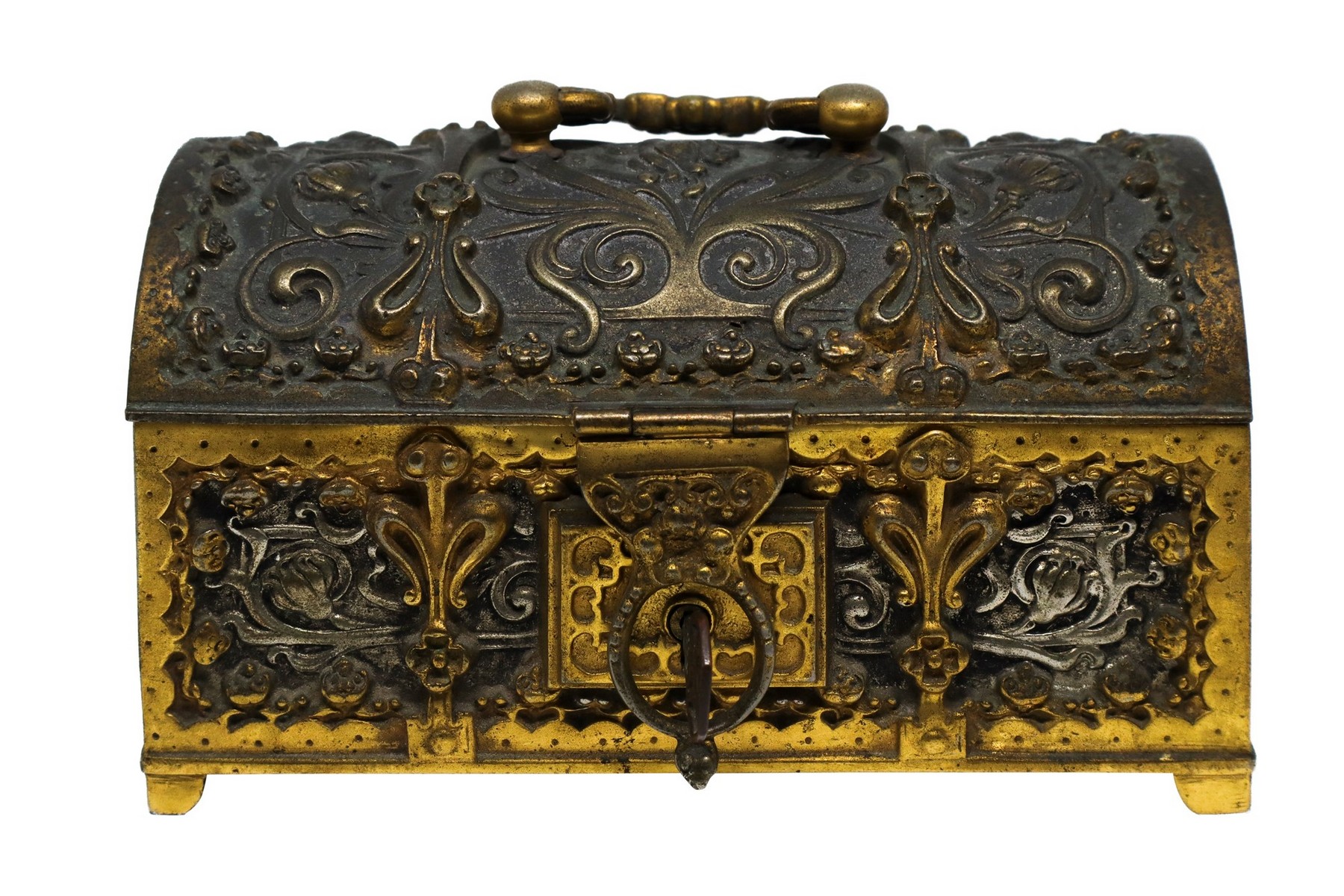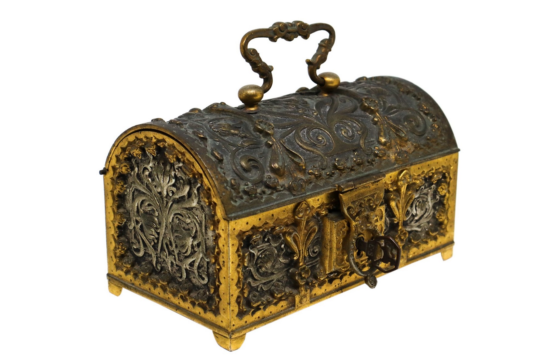2 scatole in metallo patinato argento e oro h.6; 12x8 h.10; 16x9