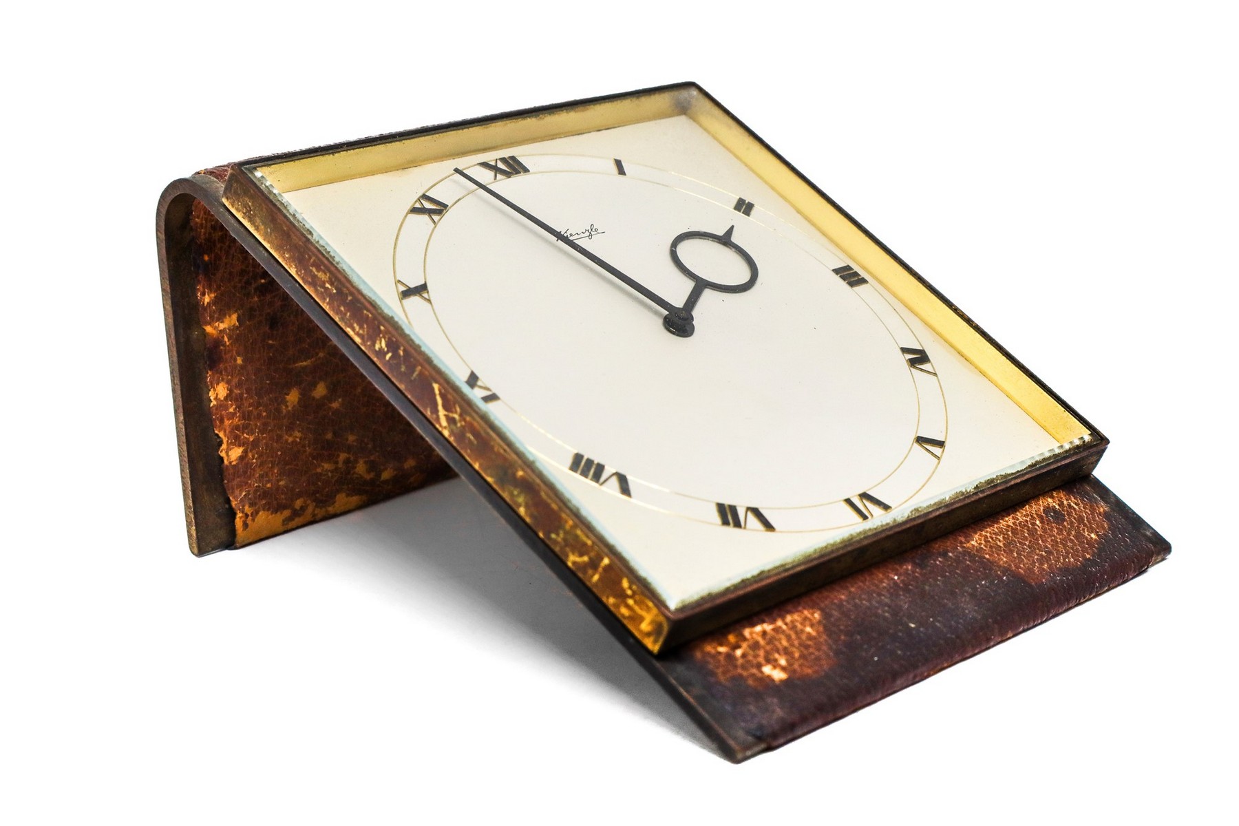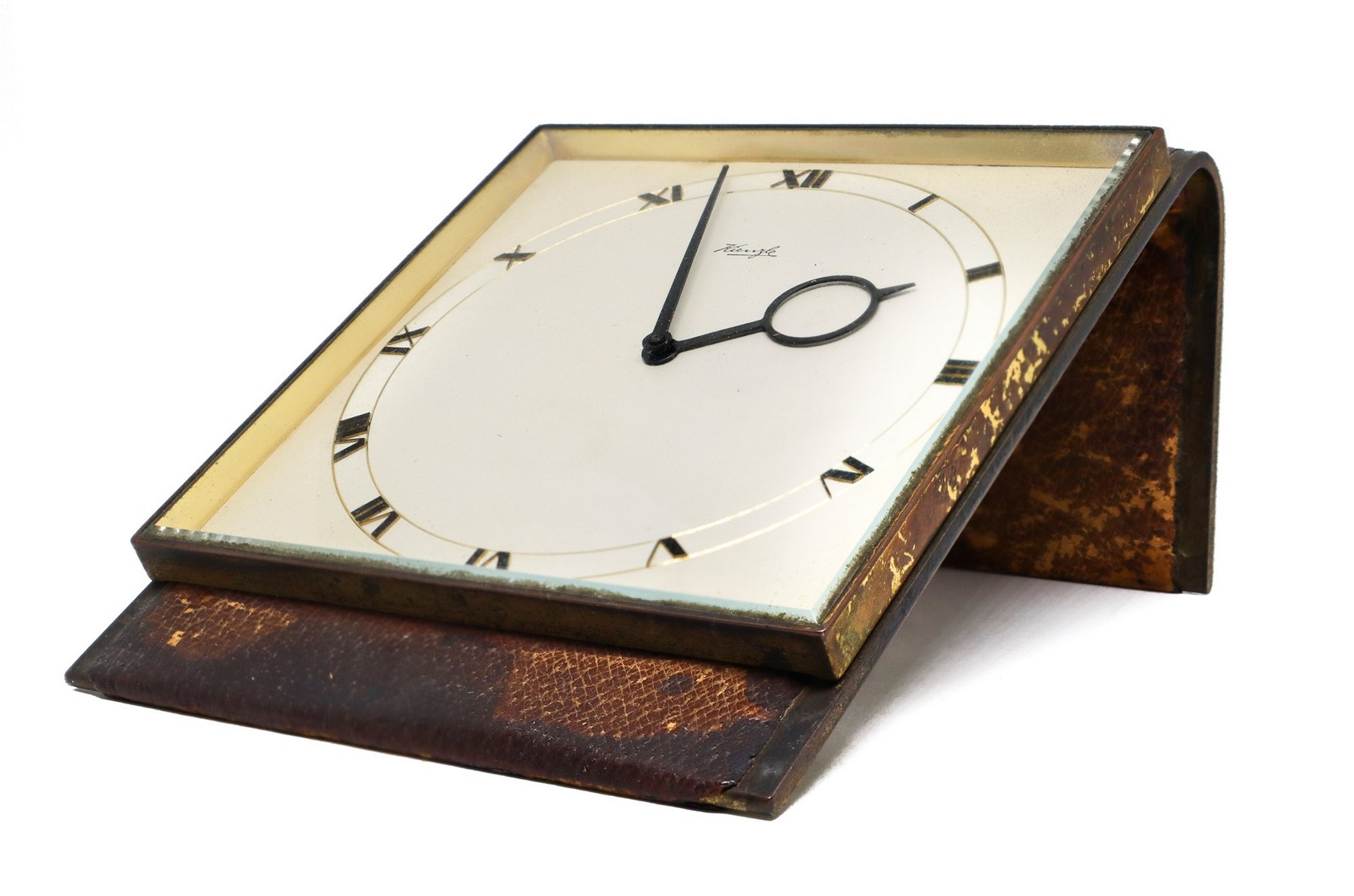 Kienzle - Raro orologio art Decò da tavolo in ottone e pelle, 30 years 12x7,5x15 Quadrante 12x12; Numeri dorati, Carica 8 giorni. Da revisionare