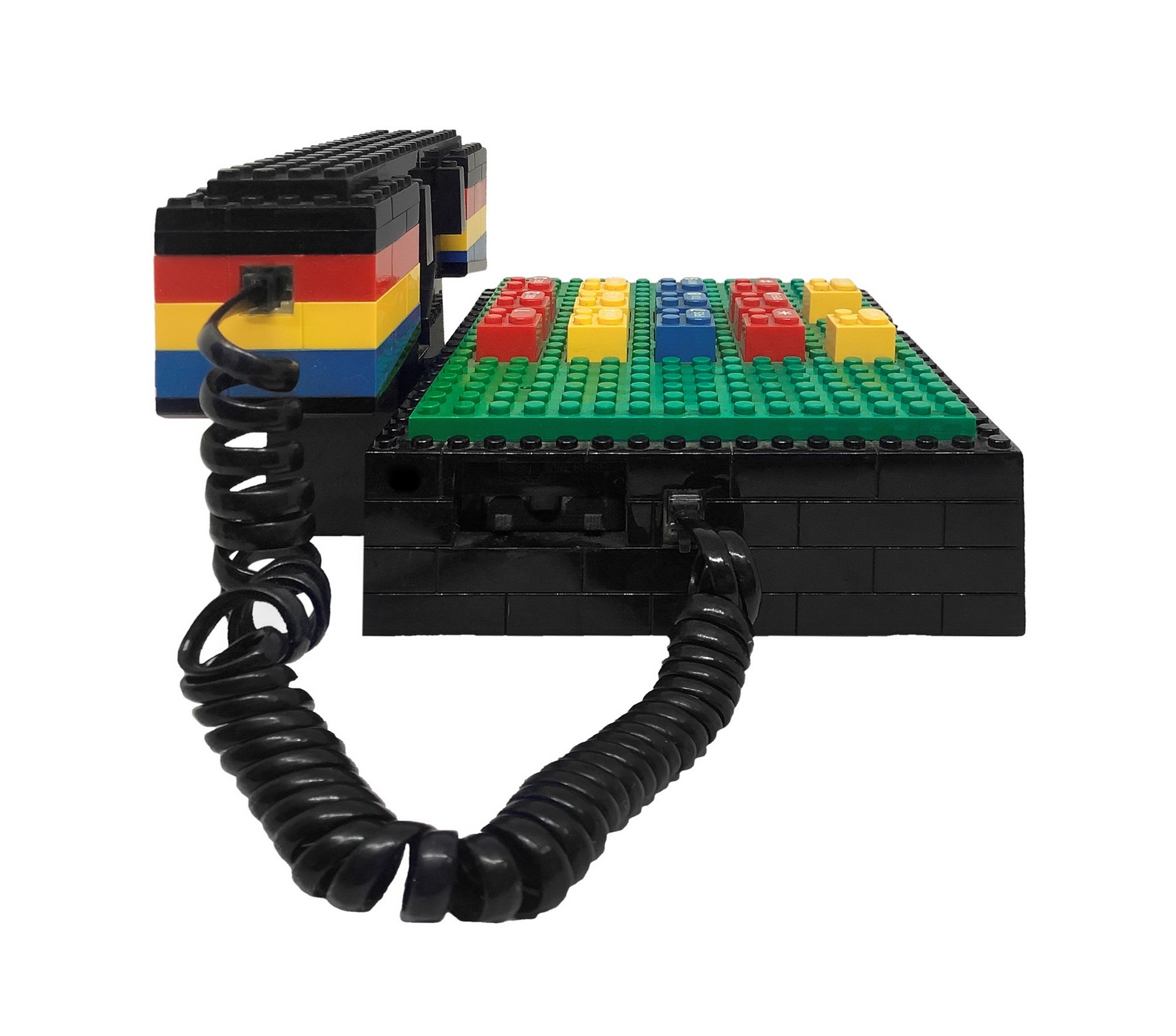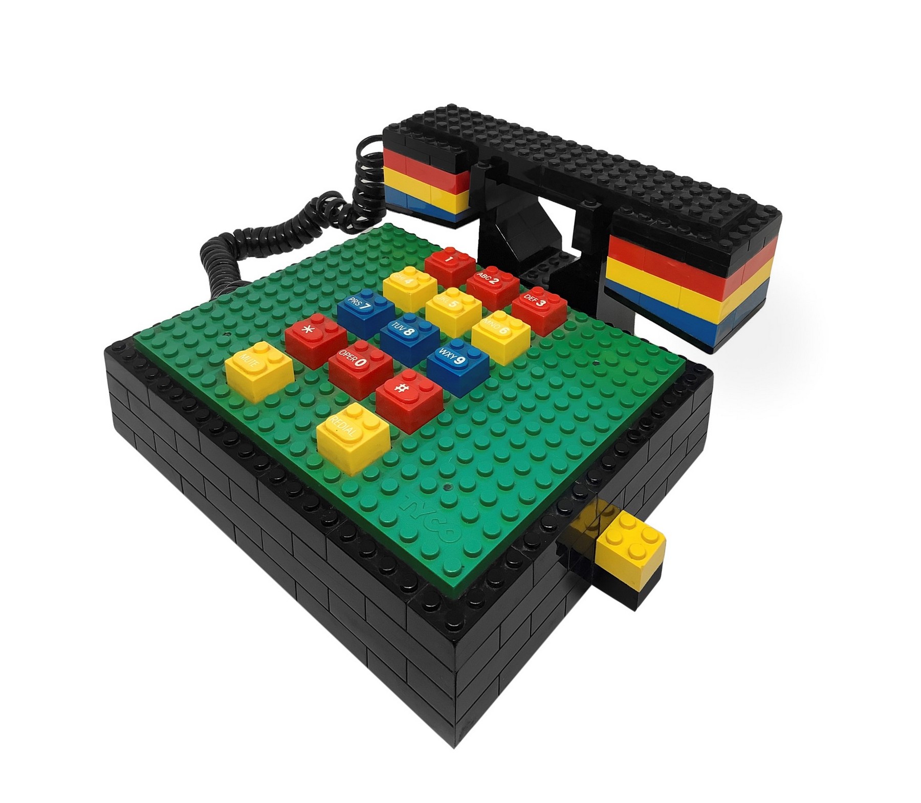 Telefono fisso Lego, 1980s Tyco vintage design. Data di produzione sul retro 9/1/88.