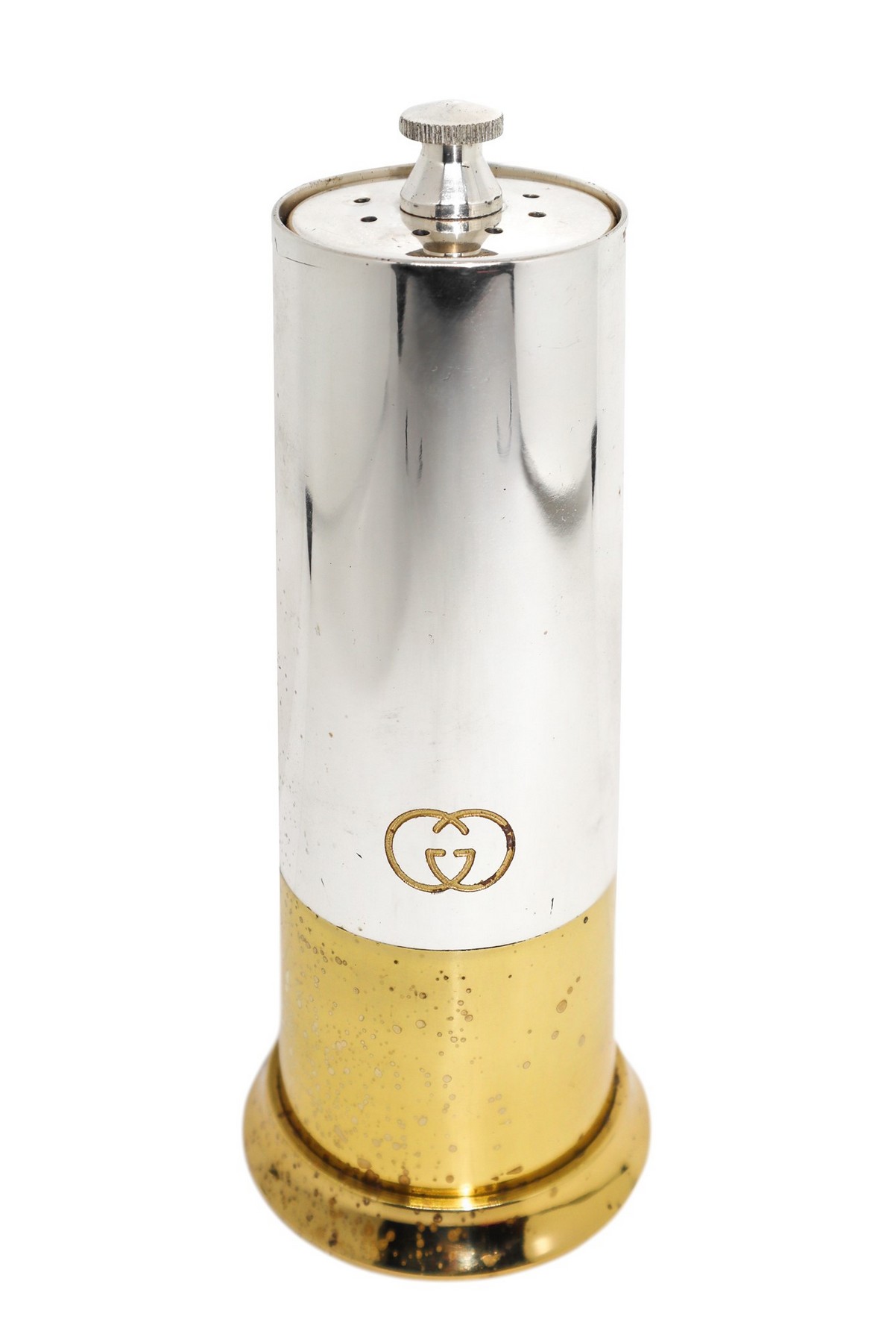 Gucci - Macinapepe Vintage H cm 14 Logo GG in metallo argentato e dorato sul davanti.
