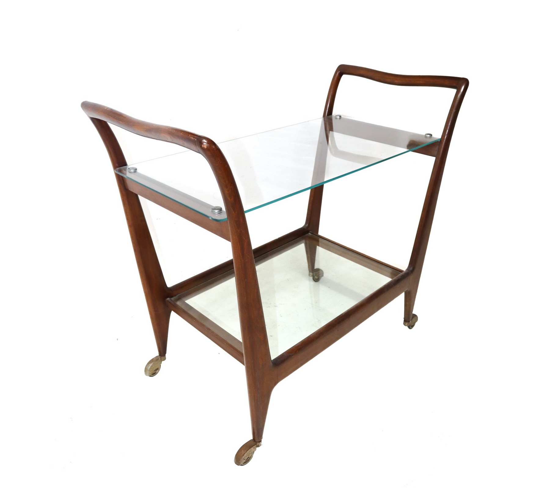 Cesare Lacca (Napoli 1929) - Carrello in legno di faggio con finitura acrilica e piano in vetro, 50s
