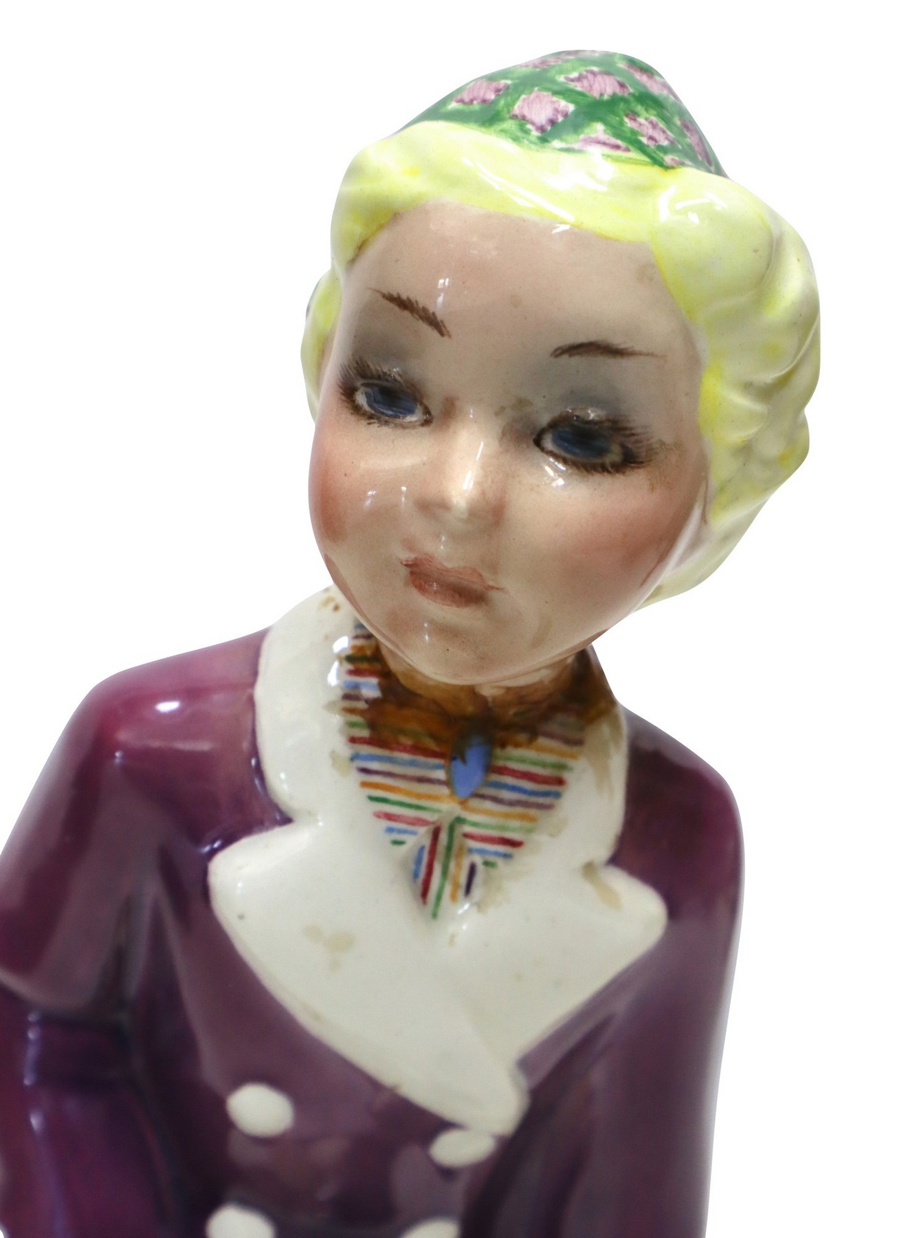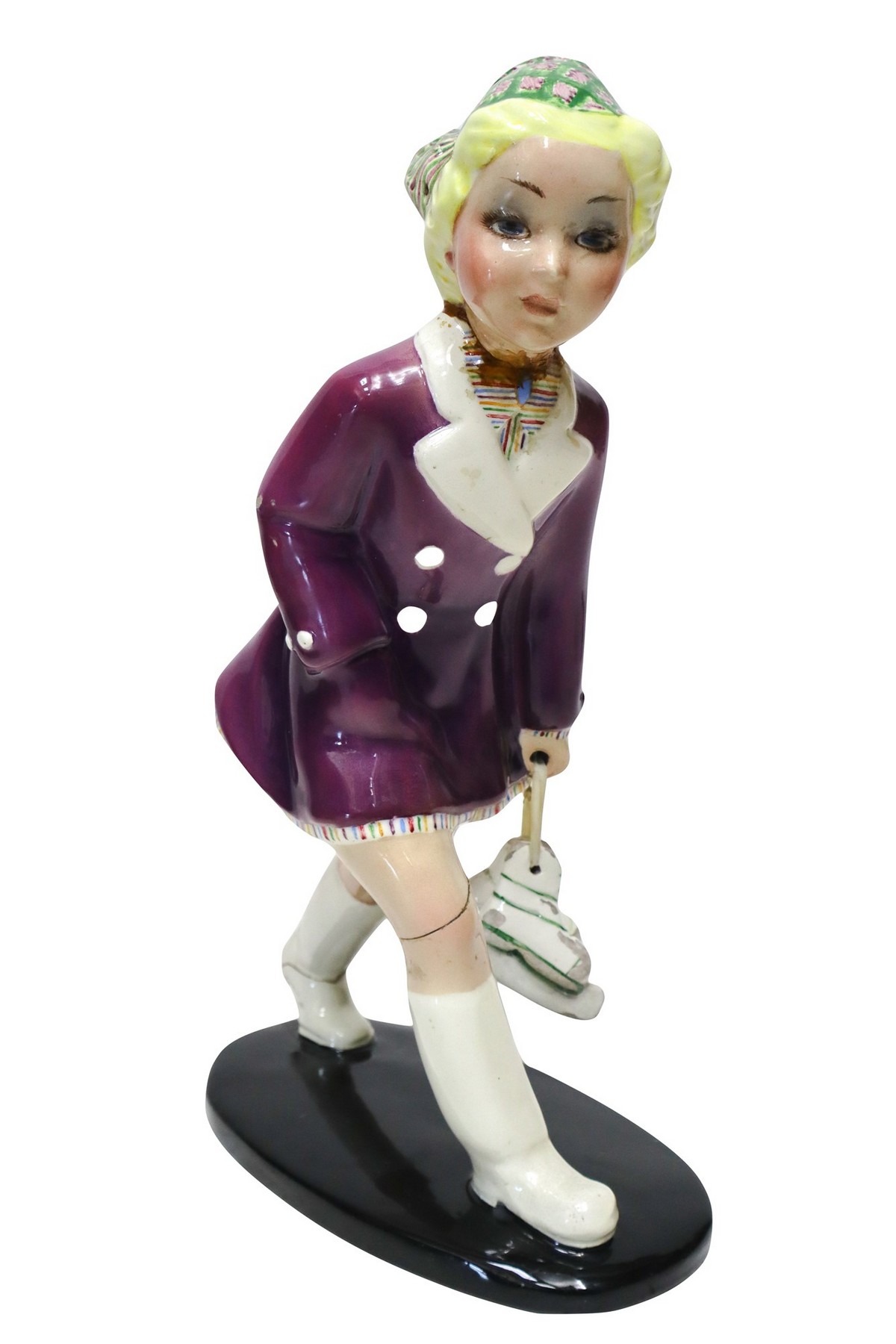 Lino Berzoini (Ficarolo 1893-Albisola 1971) - Statuina in ceramica raffigurante bambina con pattini da ghiaccio