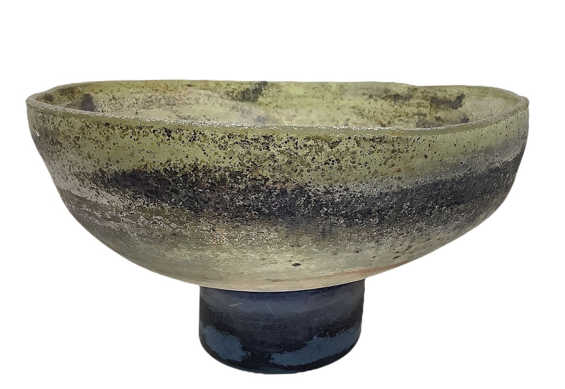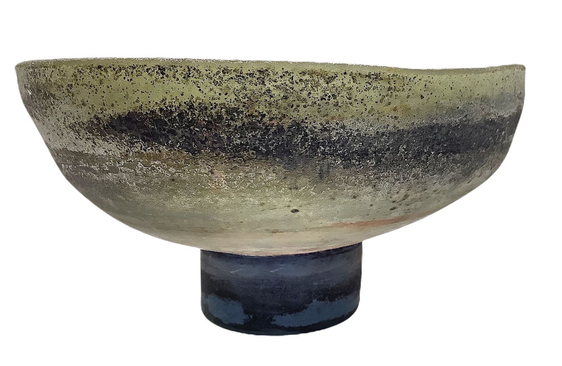 Cenedese Murano (attribuito_a) - Coppa in vetro scavo H 10 cm, diametro 21 cm produzione Murano in stile Napoleone Martinuzzi, con base circolare applicata.