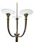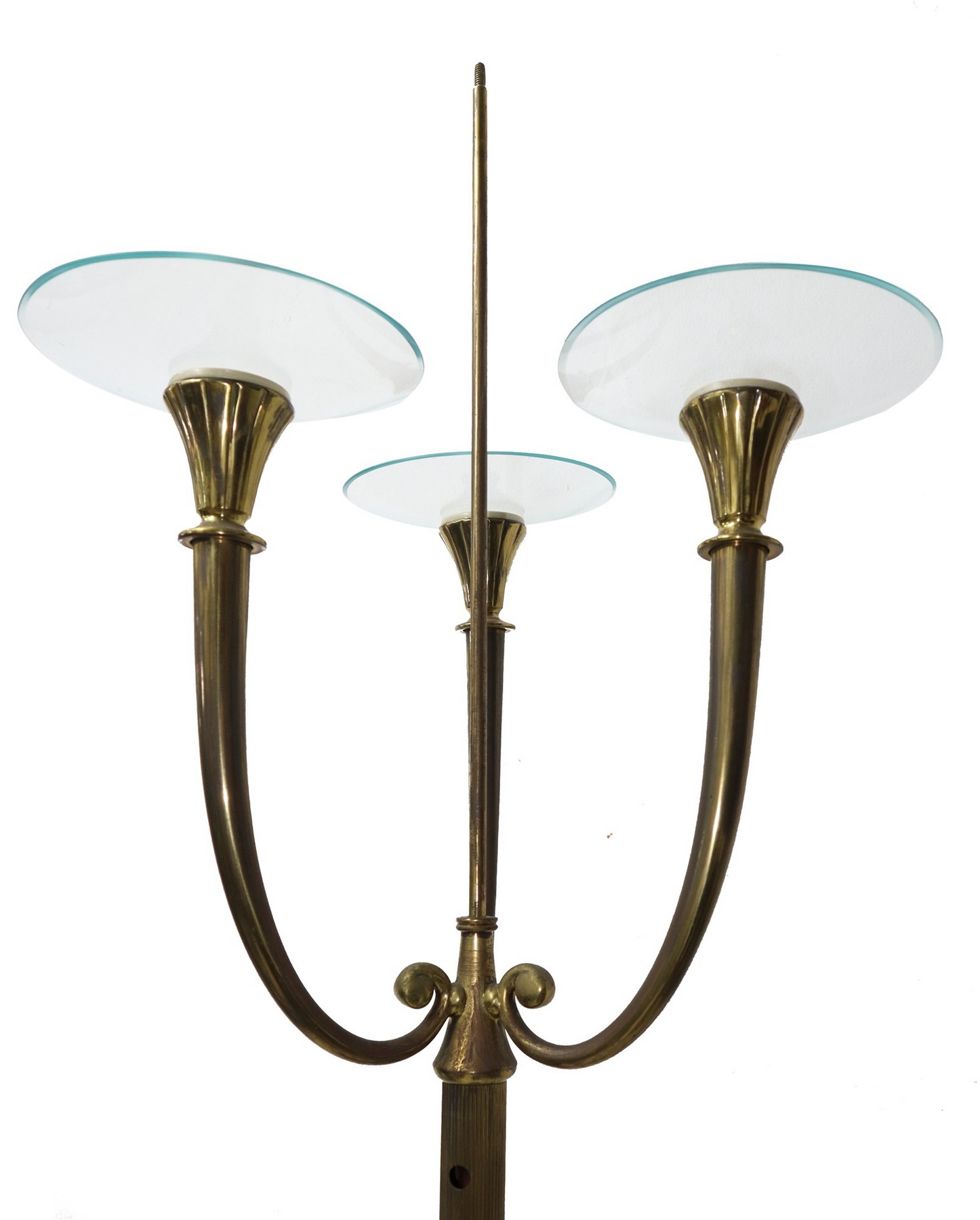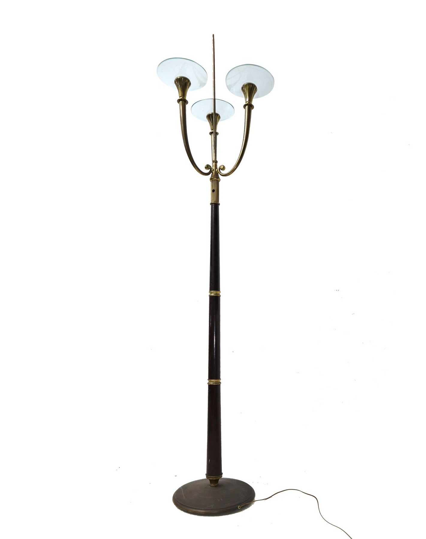 Lampada da terra a tre luci base in ottone e fusto laccato nero