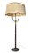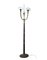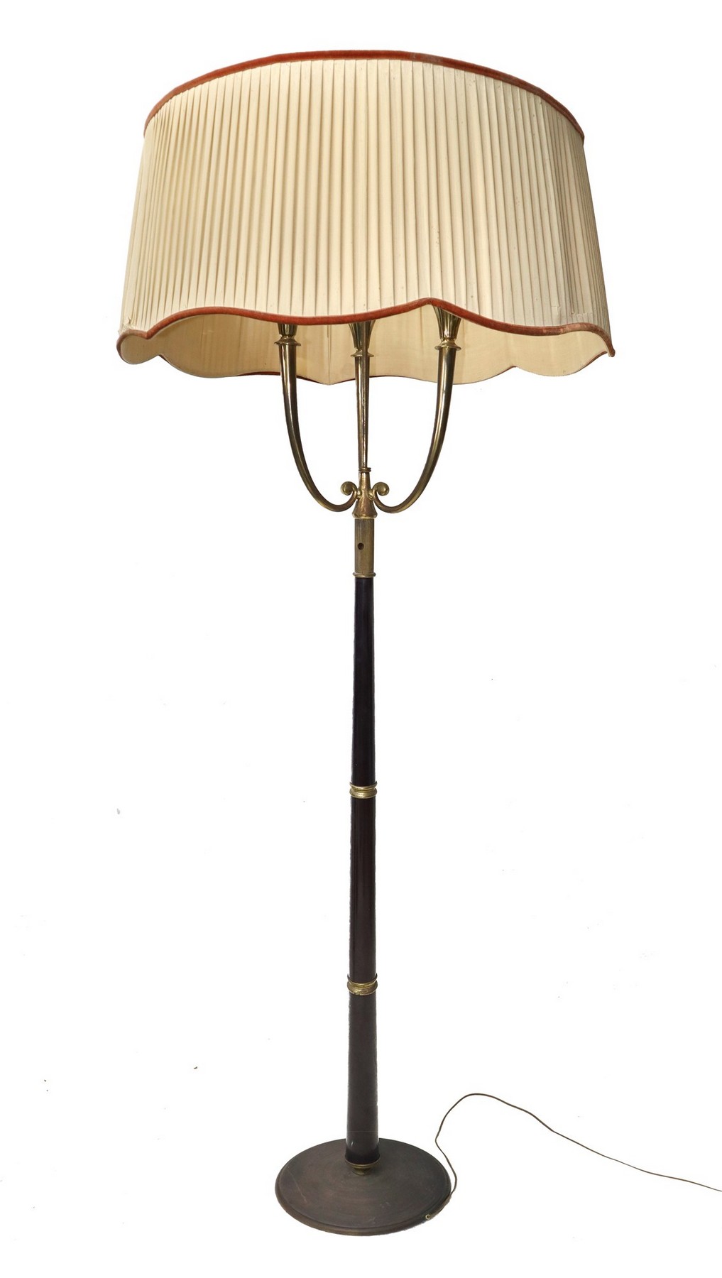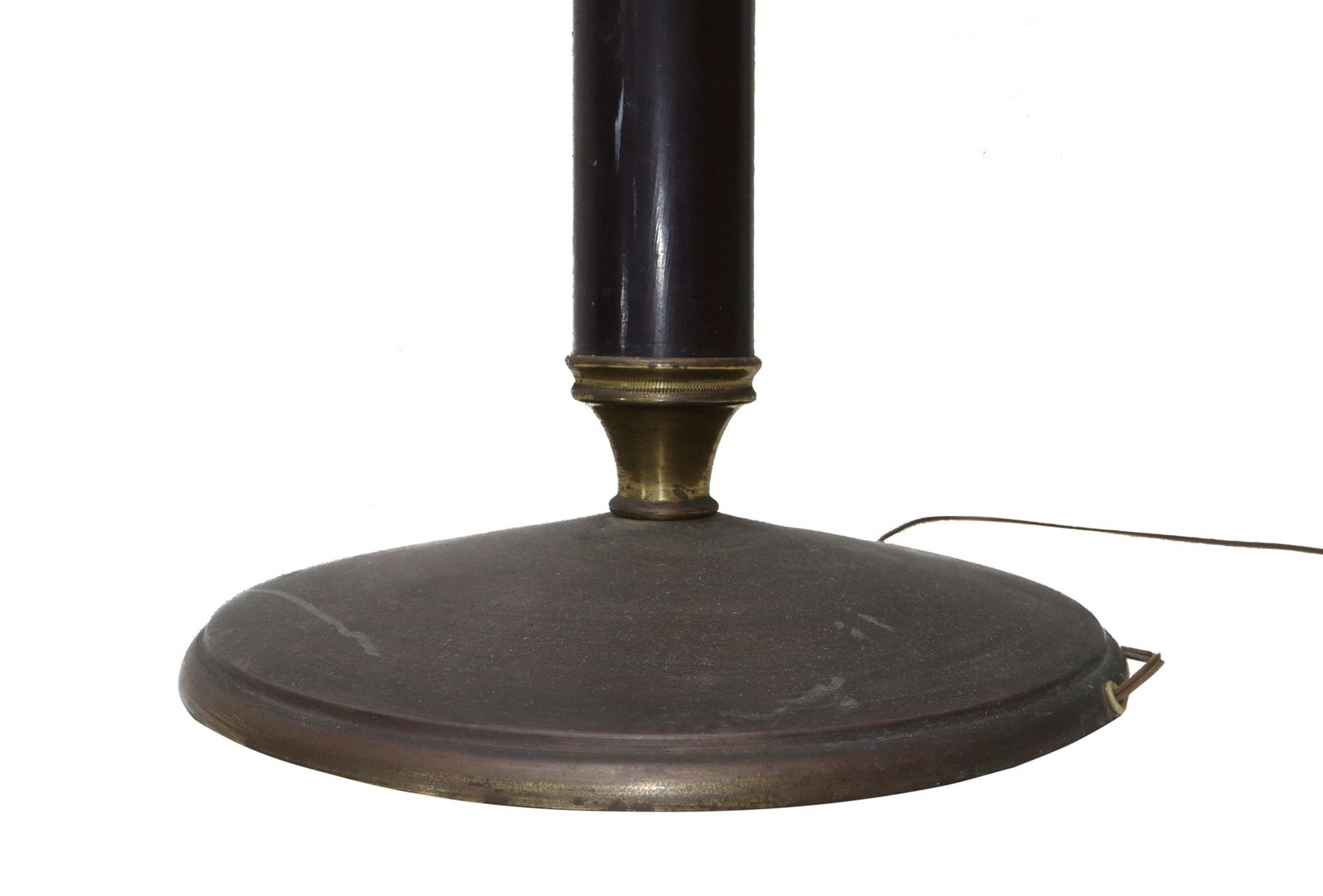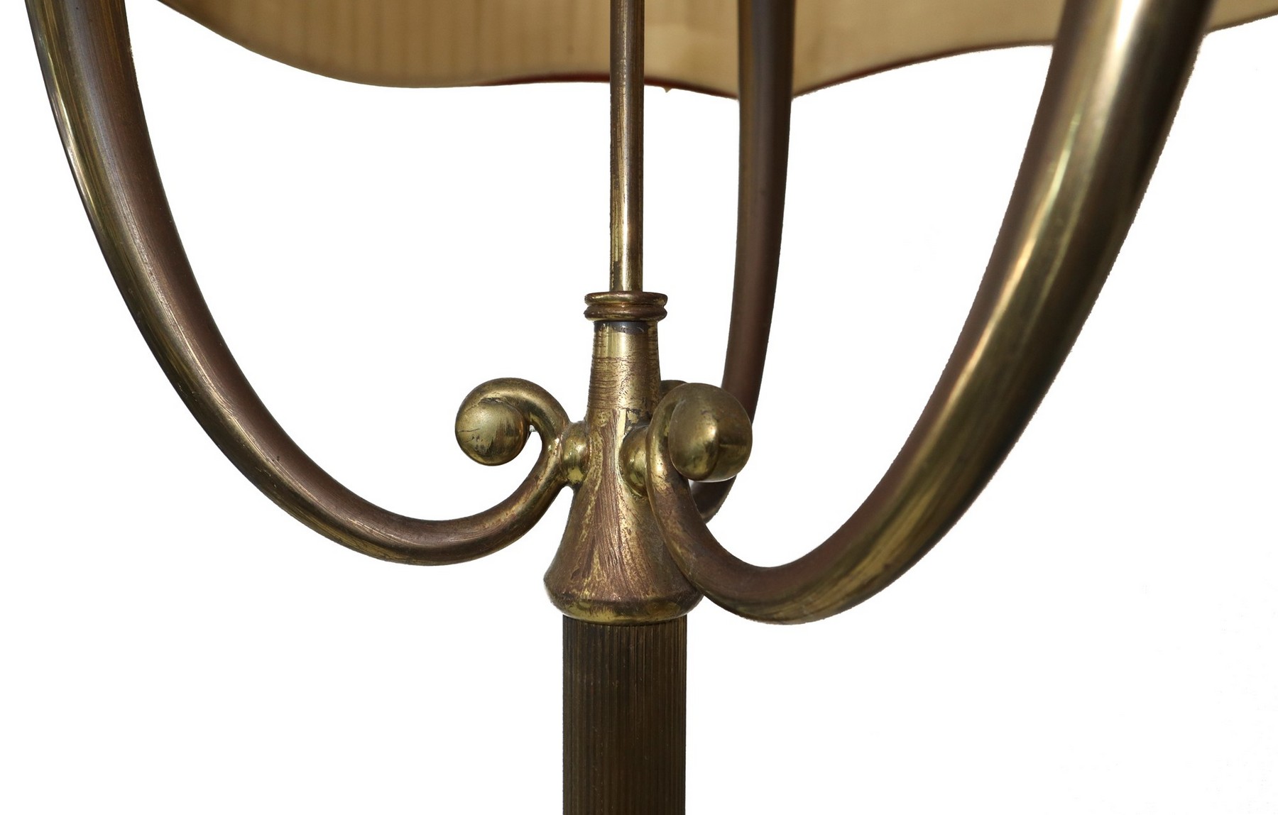 Lampada da terra a tre luci base in ottone e fusto laccato nero h.180 dm 35 Paralume sgualcito