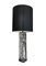 Barovier e Toso - Lampada da tavolo di forma cilindrica, 90's 74x30 cm in vetro fumè effetto specchio con superficie irregolare, base in metallo, paralume cilindrico in stoffa.