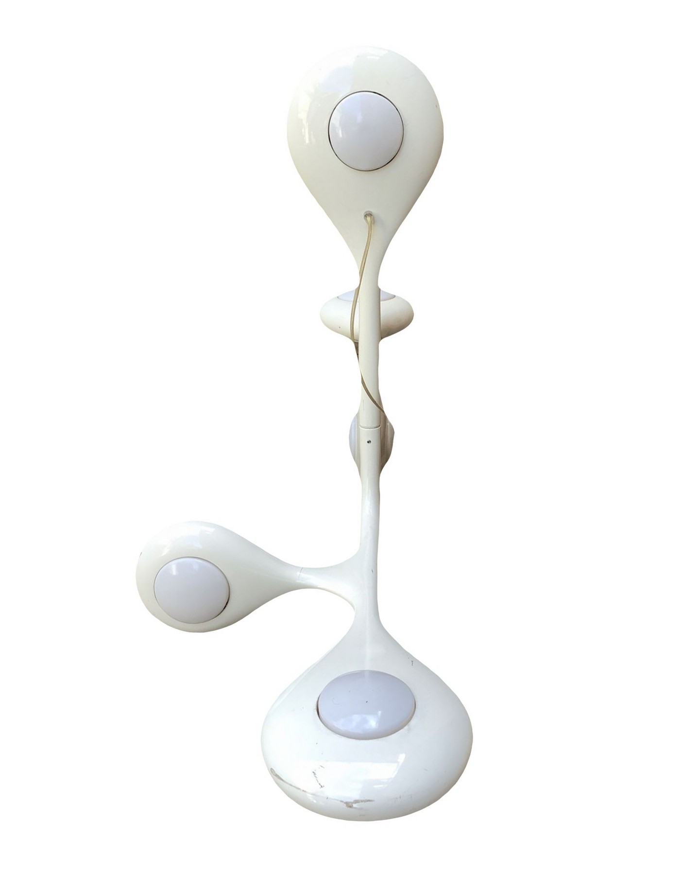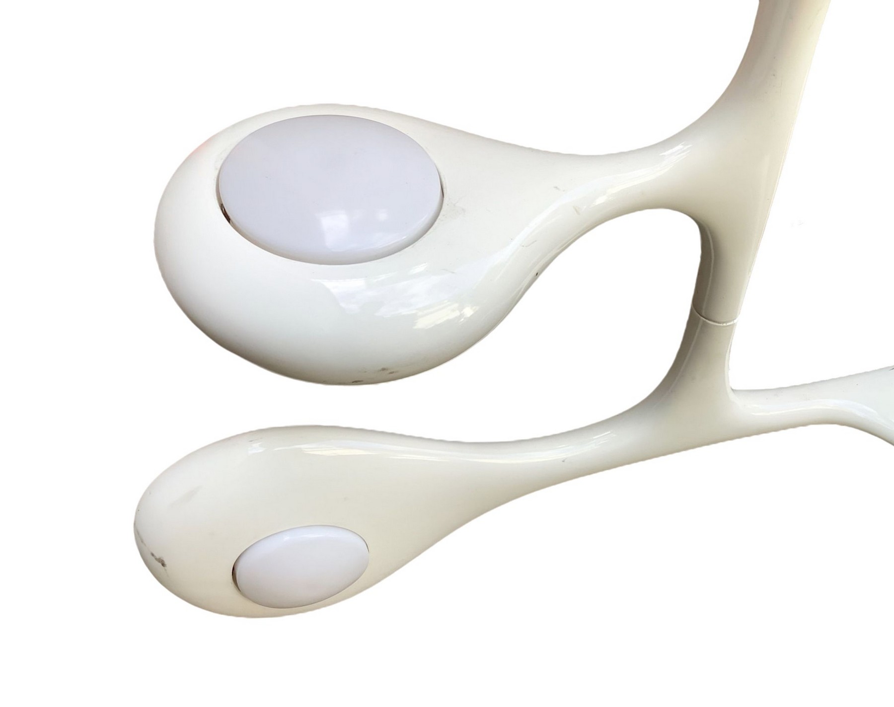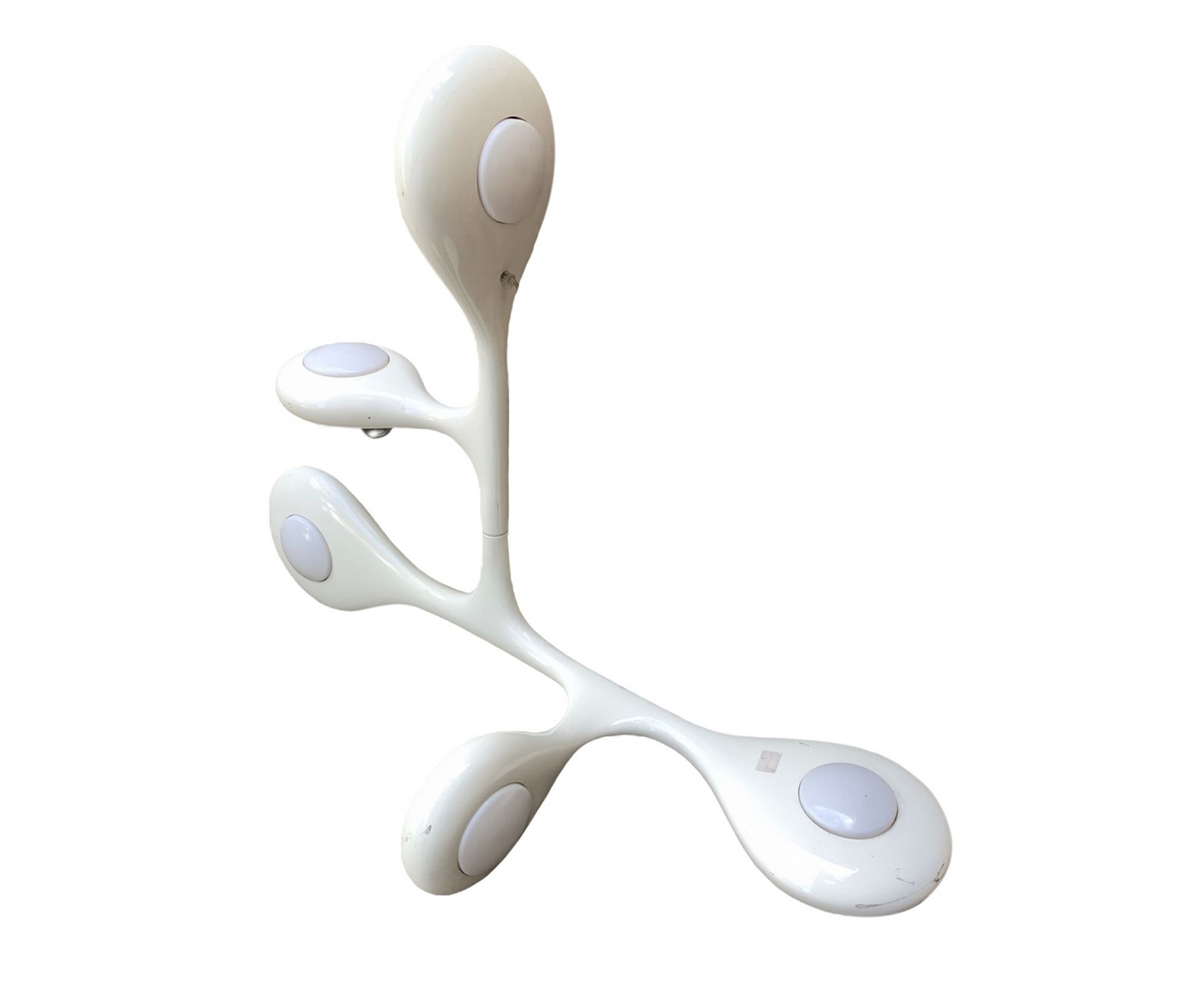 Lampada scultura con struttura in resina a motivo fitomorfo nei toni del bianco, 90's 100x80 cm Diffusori di forma circolare in Perspex opalino. Produzione francese. Segni di uso.