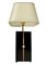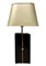 Lampada da tavolo di produzione italiana, 70's H cm 43, con paralume H cm 60 Struttura in legno laccato con inserti in pietra dura e madreperla.