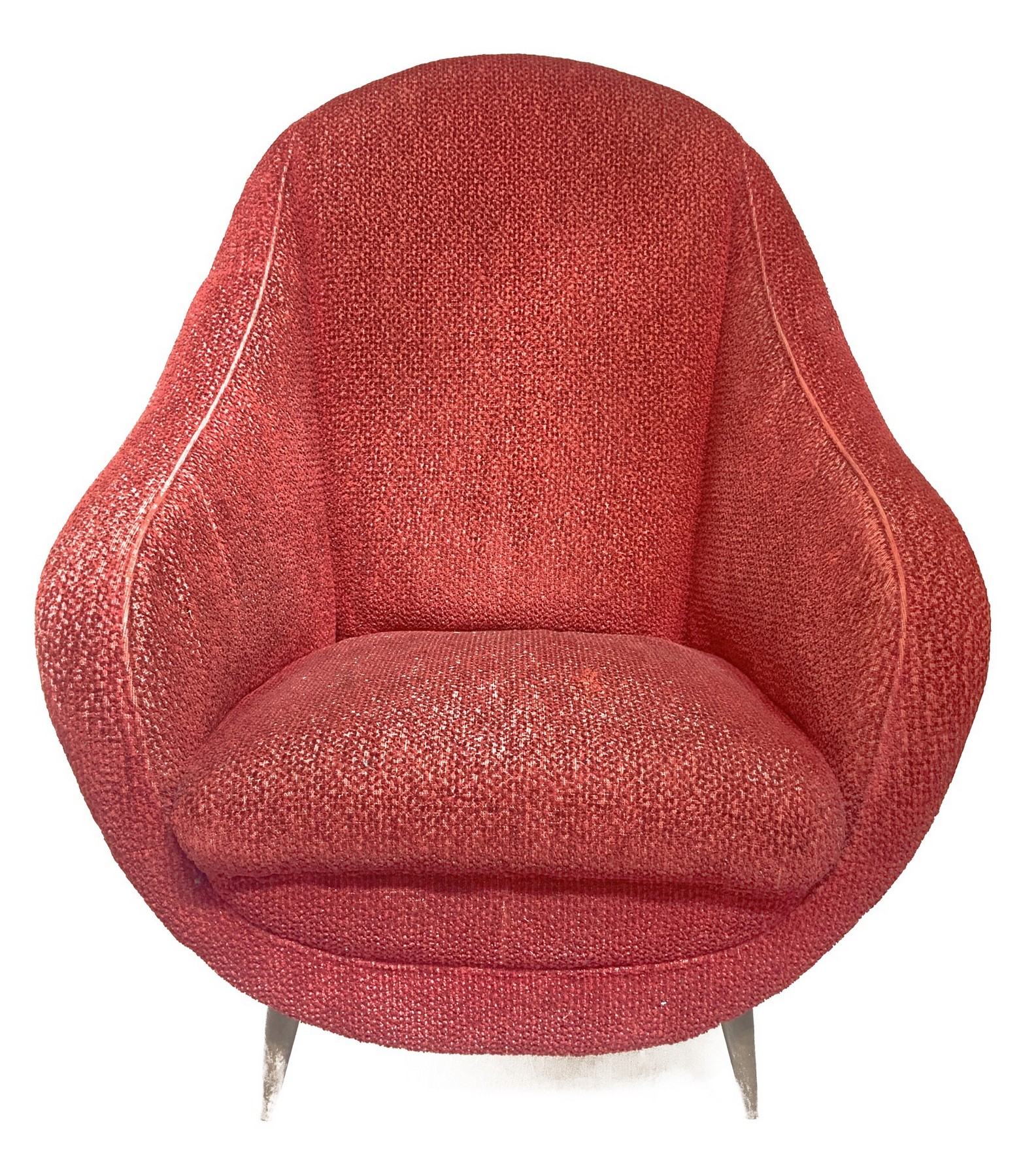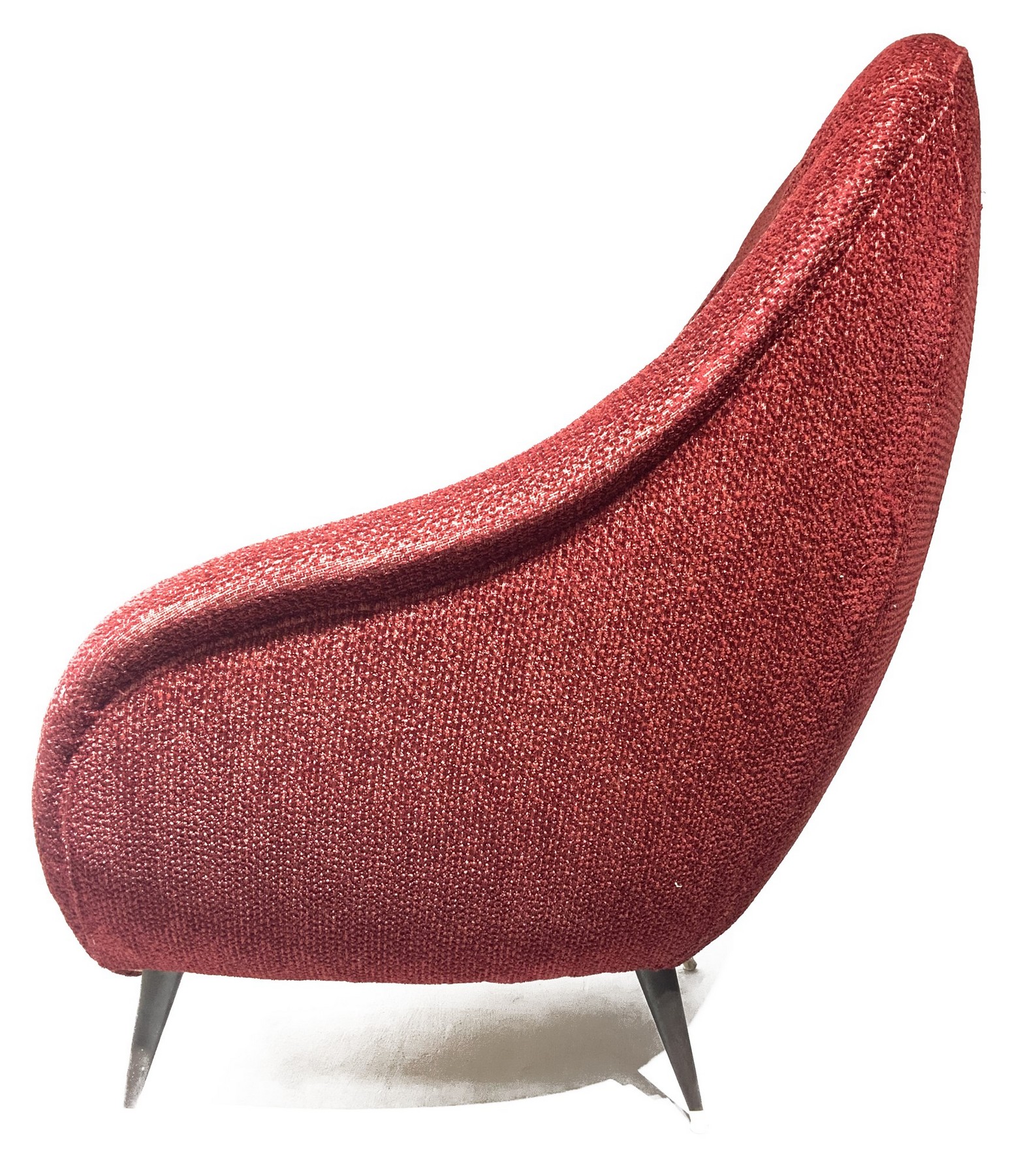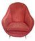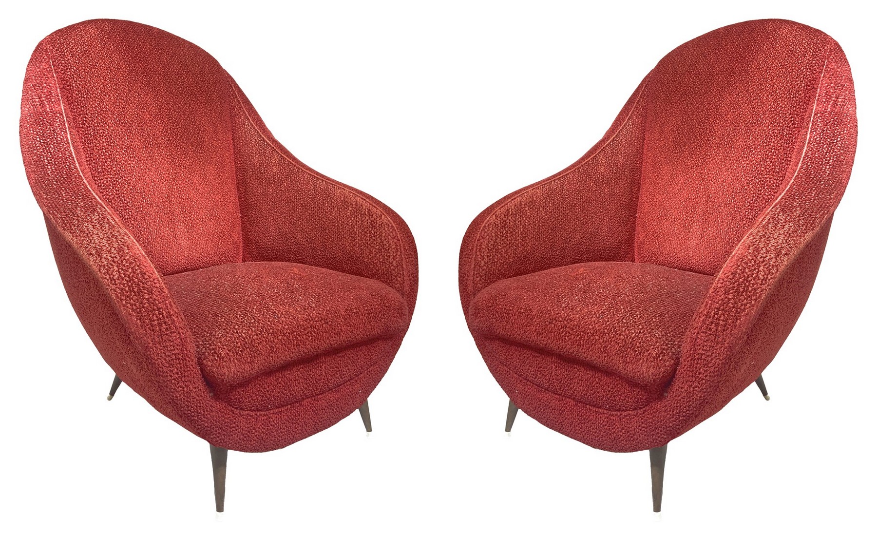 Industria Salotti e Arredamenti ISA Bergamo (1940-1970) - Anni ‘50. Coppia di poltrone, struttura in legno, piedi in ottone Cm 90x66x70 rivestimento in orsetto rosso, originale del periodo.
