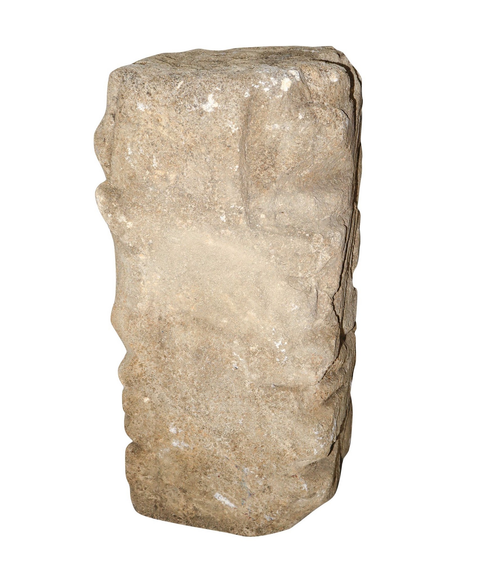 Coppia di Sculture in pietra arenaria, con raffigurazioni di volti H cm 50x24x21,5