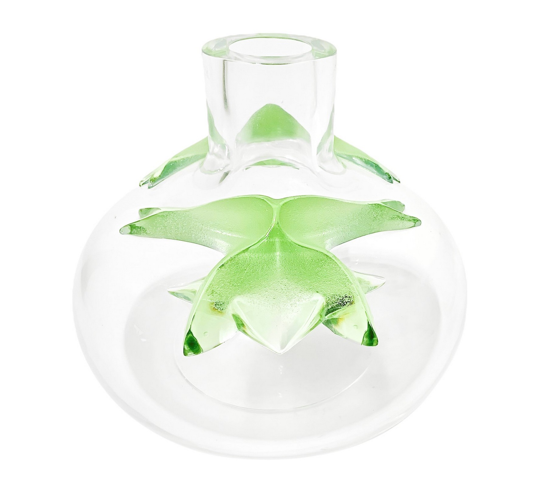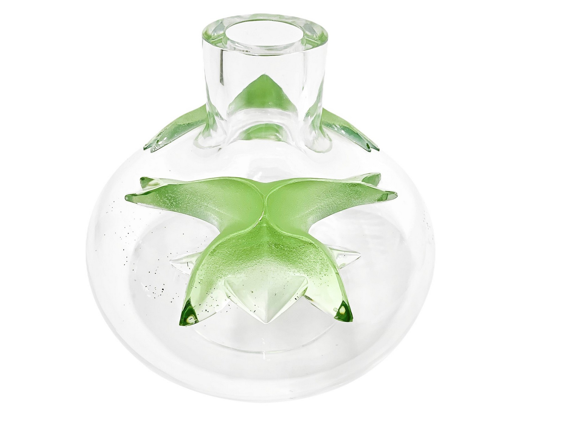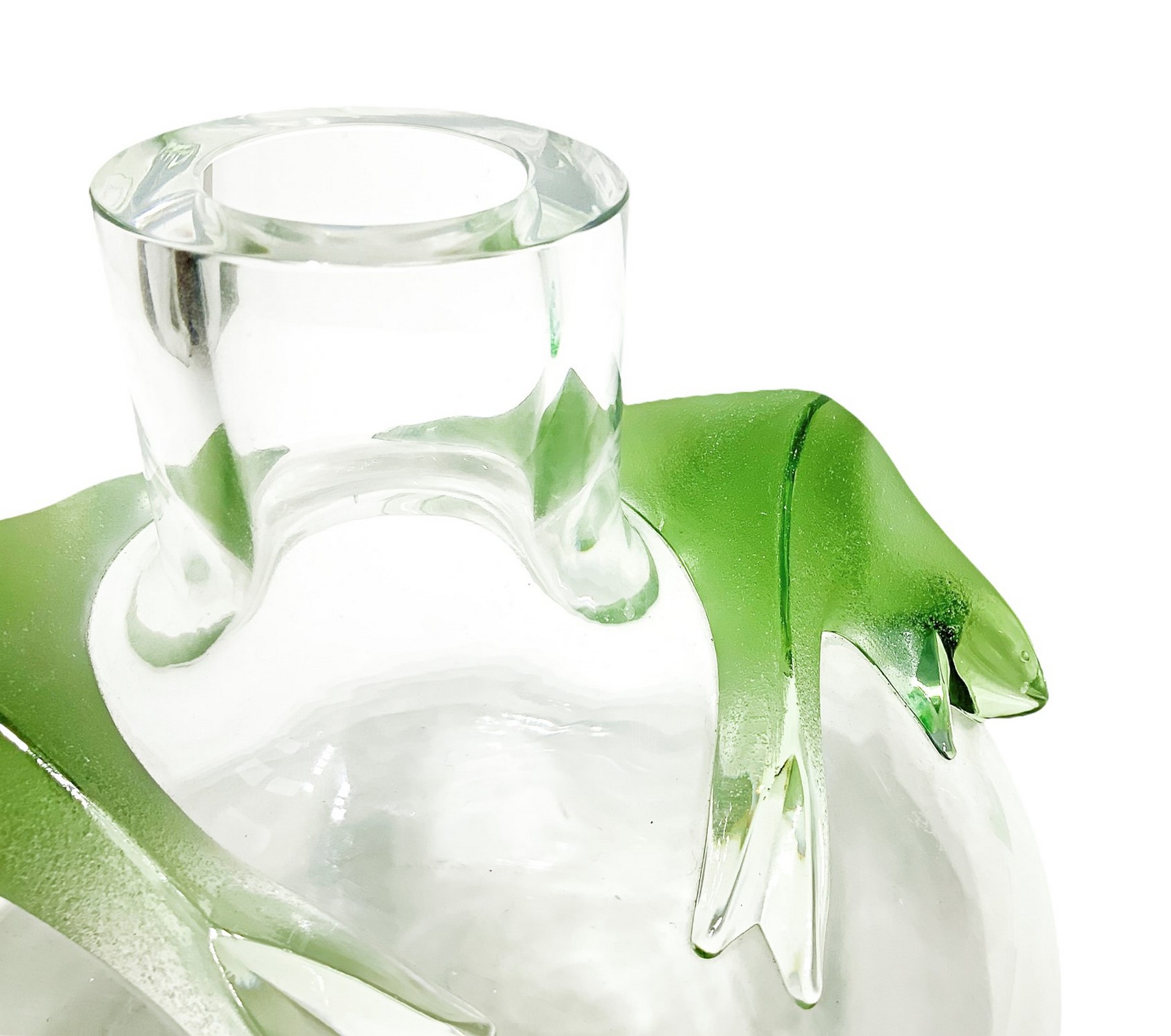 Vaso Lalique, corpo in vetro trasparente con decorazione vegetale in verde satinato.
