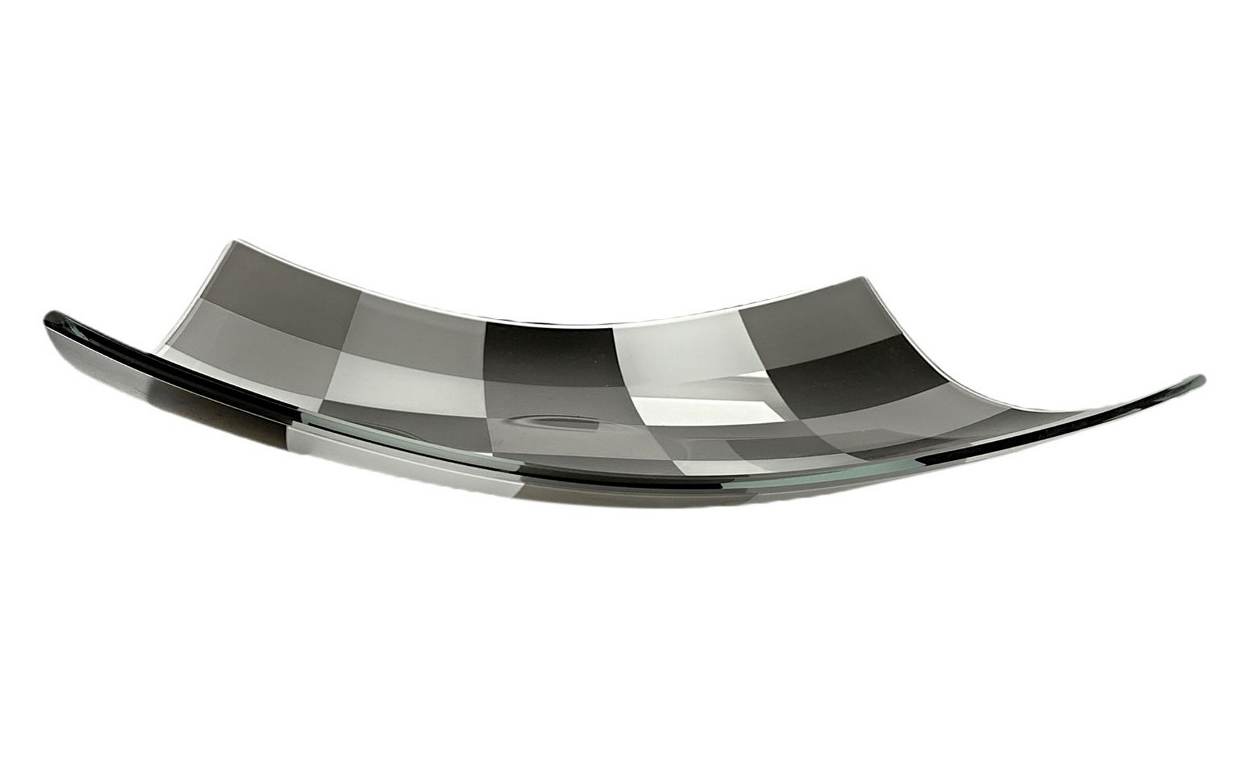 Rosenthal Home Design (seconda metà XX secolo) - Coppia di centrotavola in vetro curvato con decorazione a scacchiera
