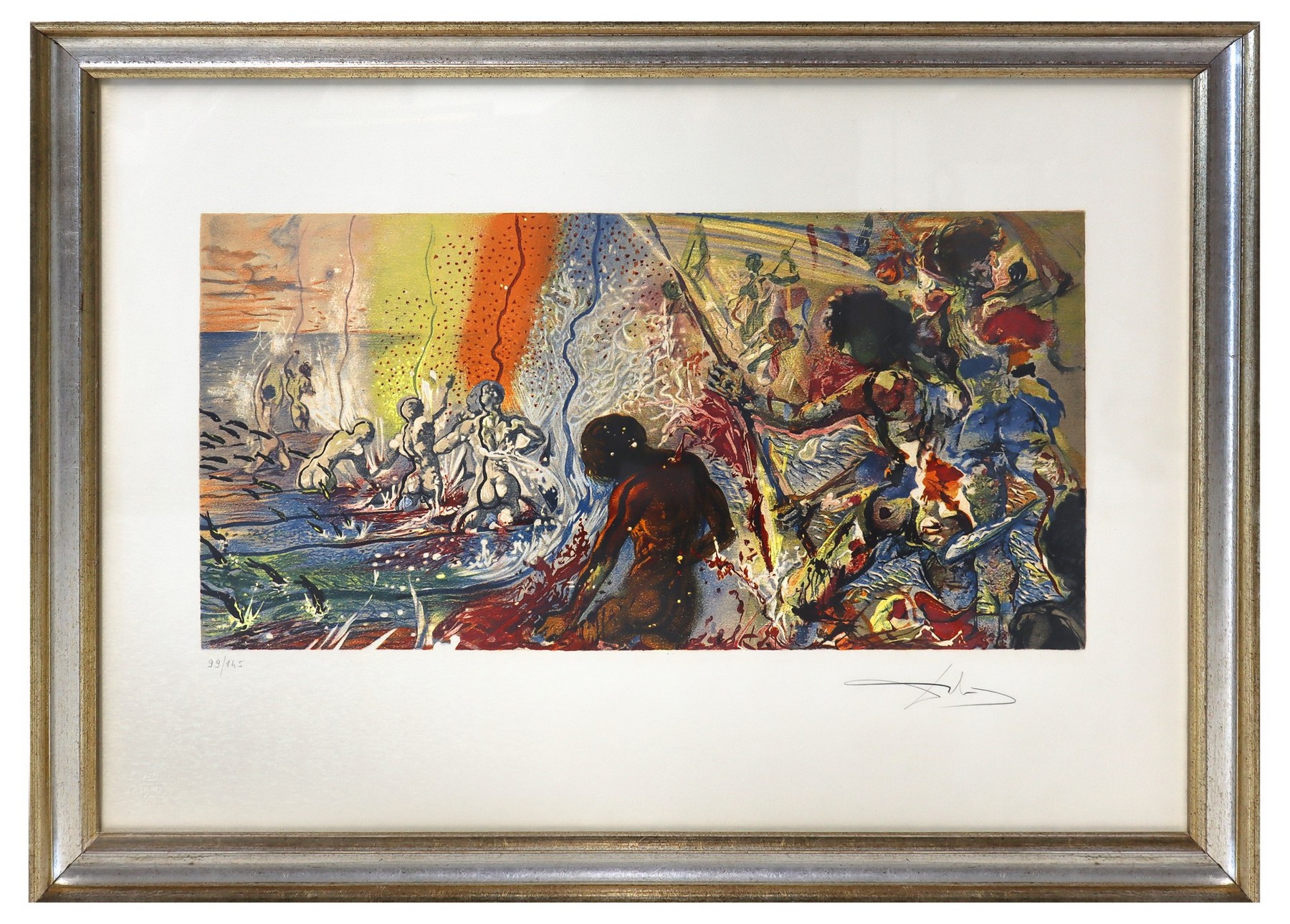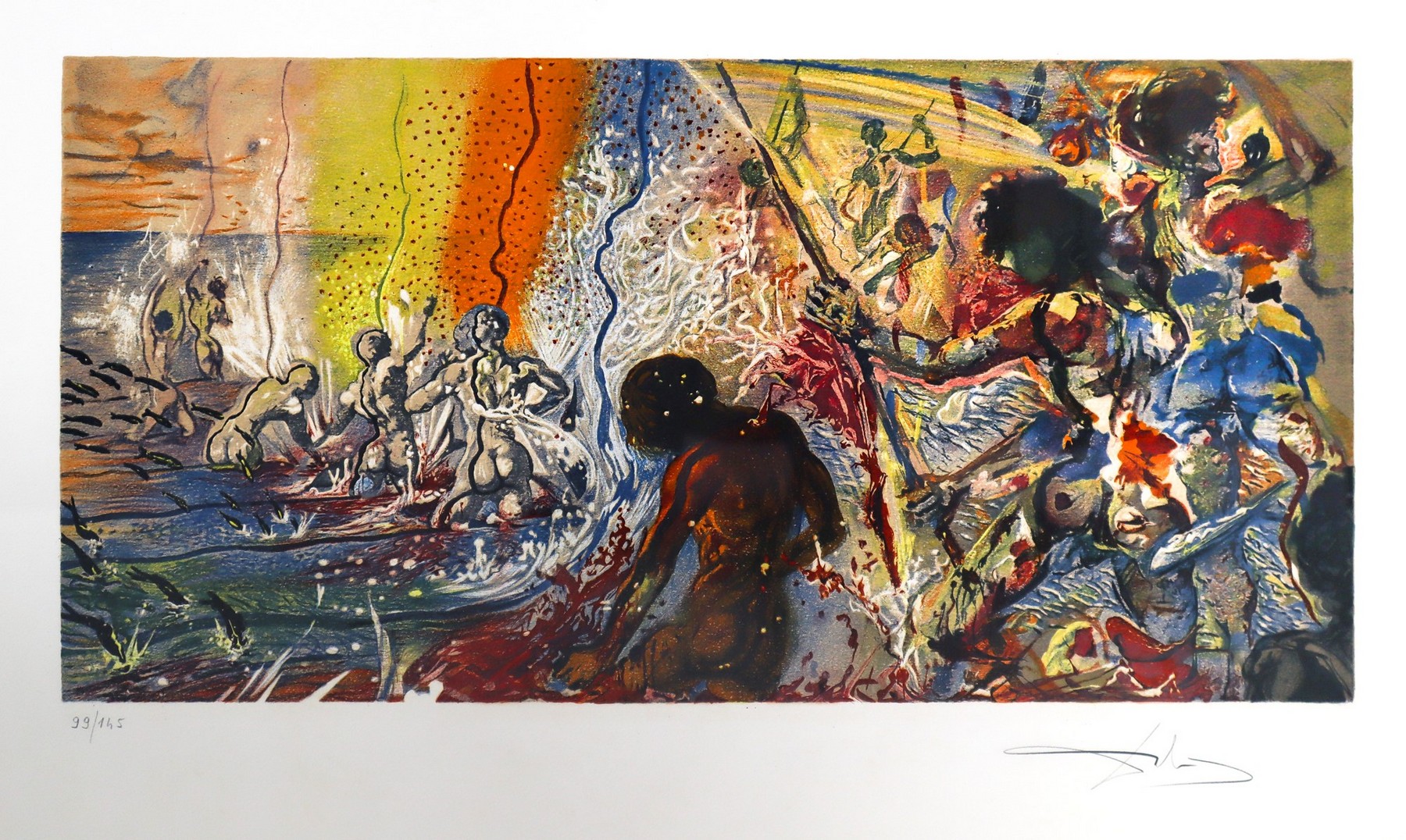Salvador Dalì (Figueres 11 maggio 1904-Figueres 23 gennaio 1989) - Mattanza di pesci Cm 30x60, in cornice cm 60x83 Litografia su carta Firmata in basso a destra e numerata 99/145