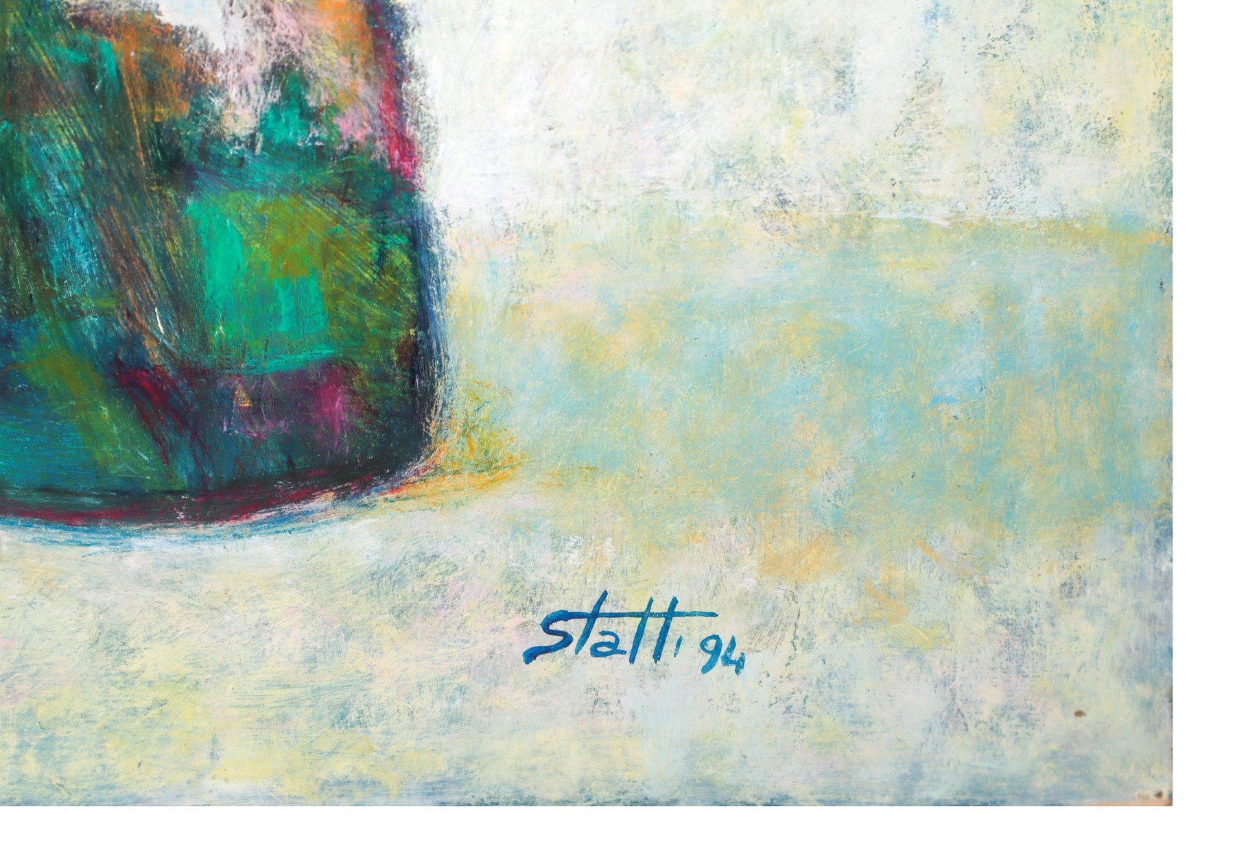 Lucio Statti (1947) - Vaso colorato, 1994 Cm 40x30 Olio su tavola Firmato e datato in basso a destra, firmato , datato e titolato al retro