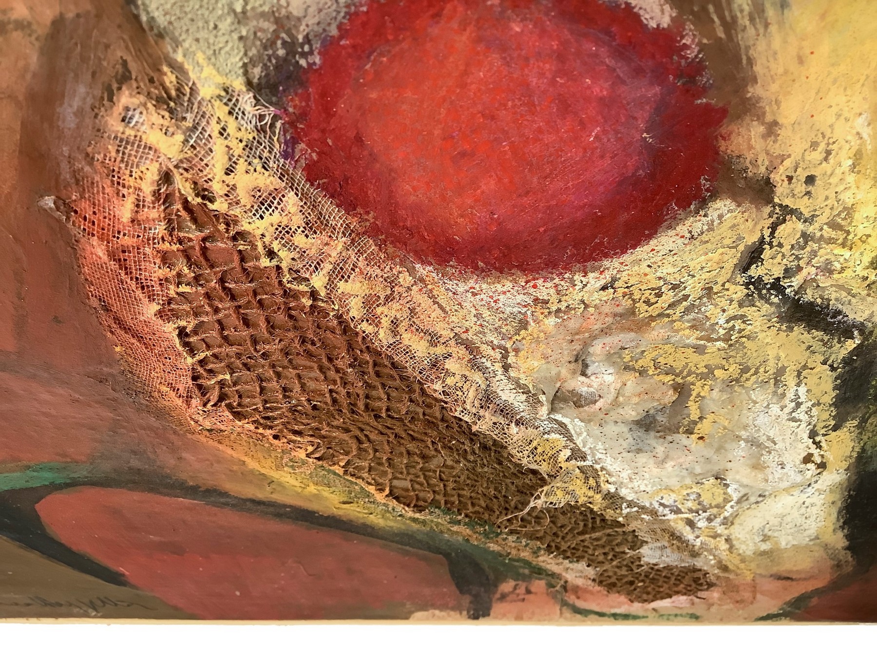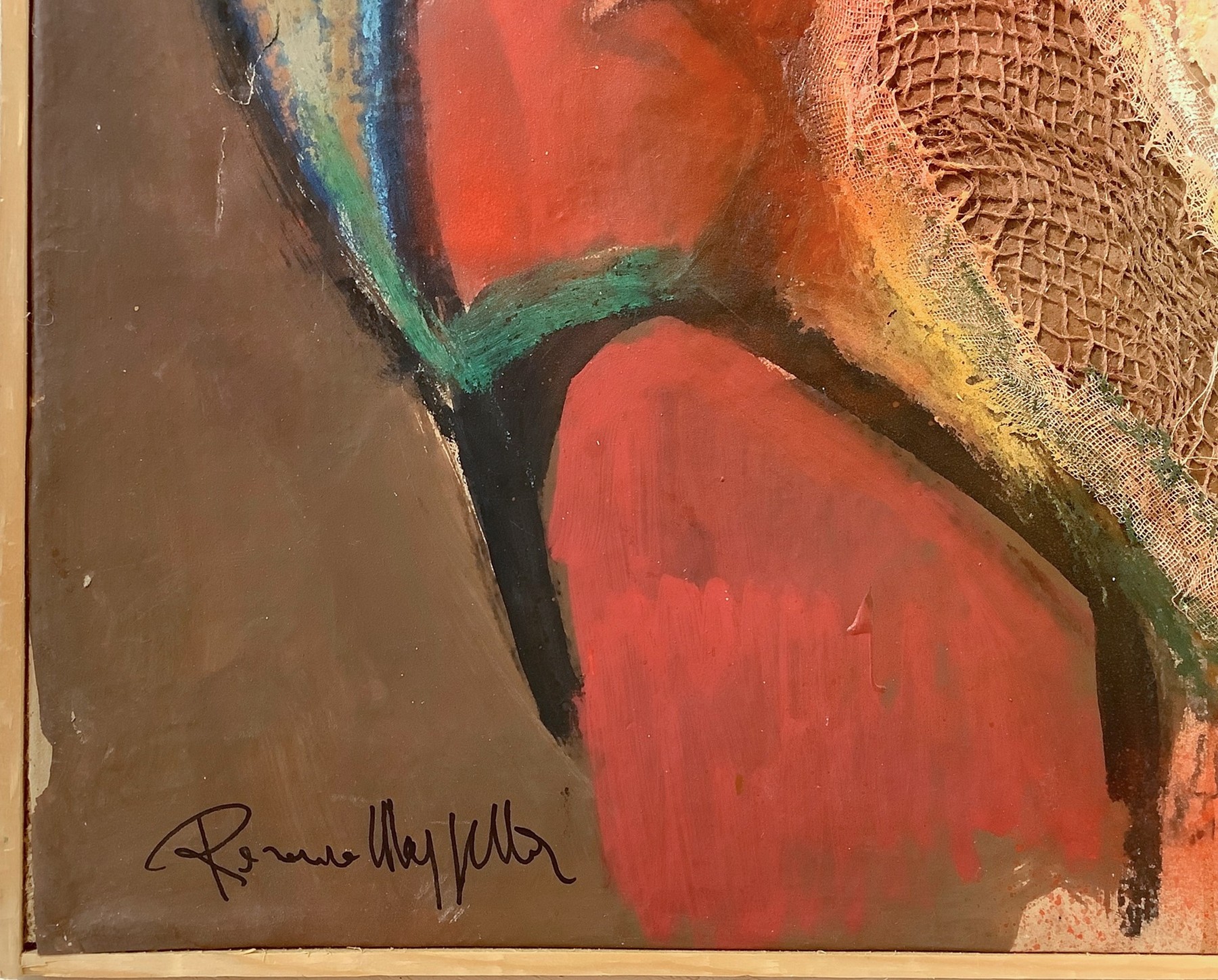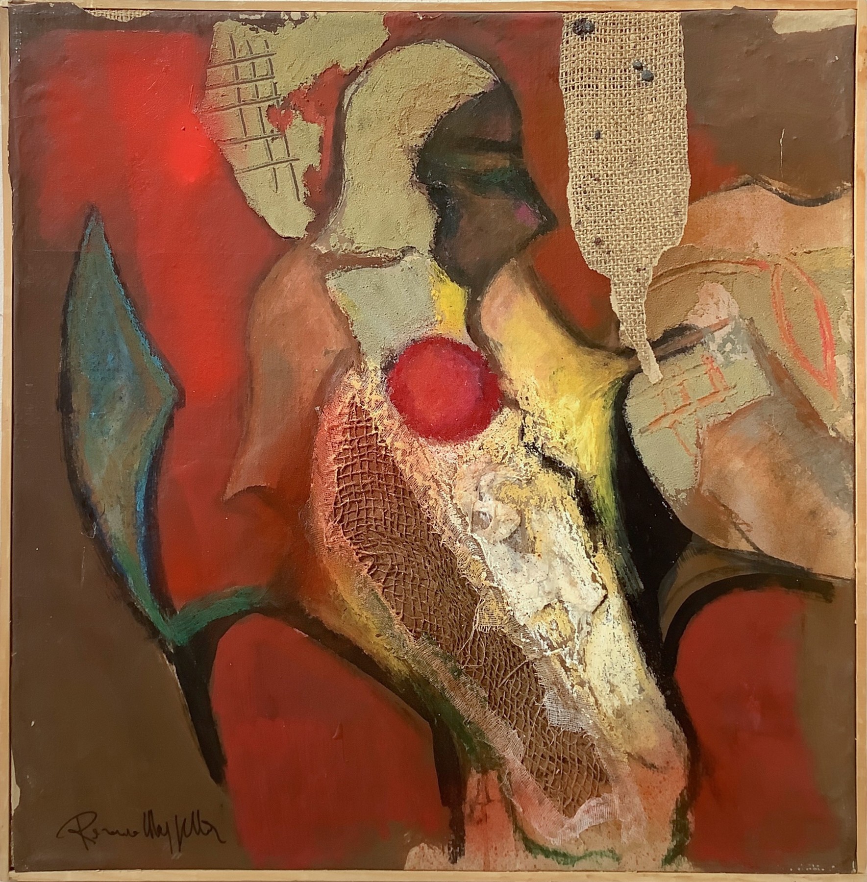 Rosario Mazzella è un pittore napoletano attivo a livello nazionale e tra le personalità di spicco nel panorama delle  avanguardie partenopee dagli anni Sessanta del Novecento. Egli è attento alle problematiche sociali e culturali che segnano la società contemporanea e utilizza tecniche differenti tipiche dell’ epoca Informale come dimostra quest’opera doveimpiega come supporto una tela di iuta. Ha insegnato pittura presso l'Istituto d'arte Filippo Palizzi di Napoli. L'opera è firmata in basso a sinistra e titolata sul retro. Autentica su fotografia. Opera esposta e pubblicata nel catalogo della mostra "Rosario Mazzella- La rilettura dei Borgia" svoltasi presso il museo Campano di Capua nel maggio 2006. Autentica della Galleria Catania Art Gallery su fotografia.