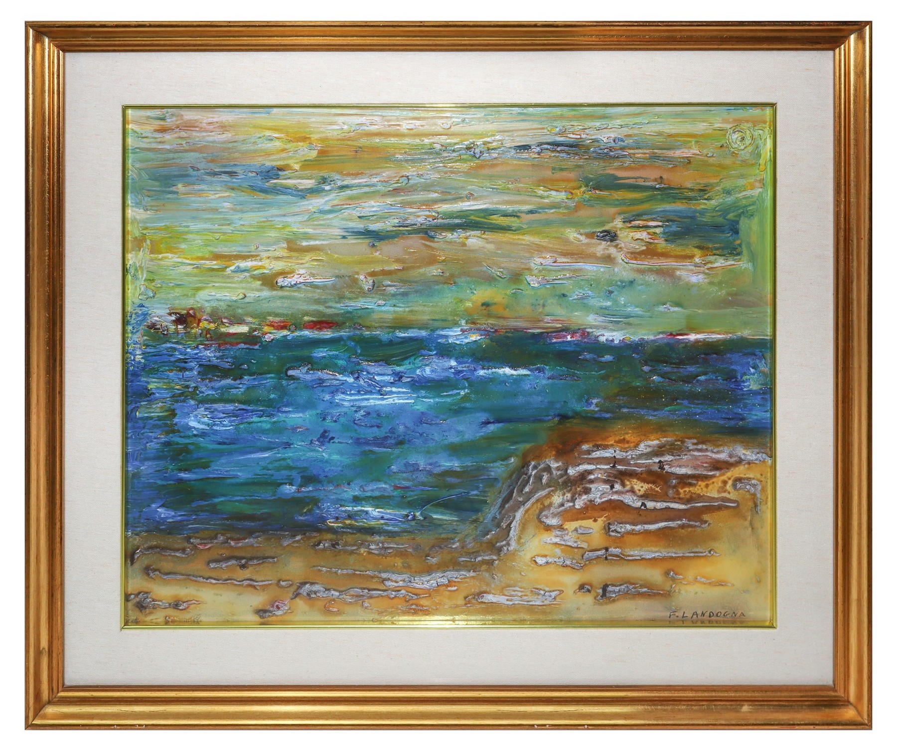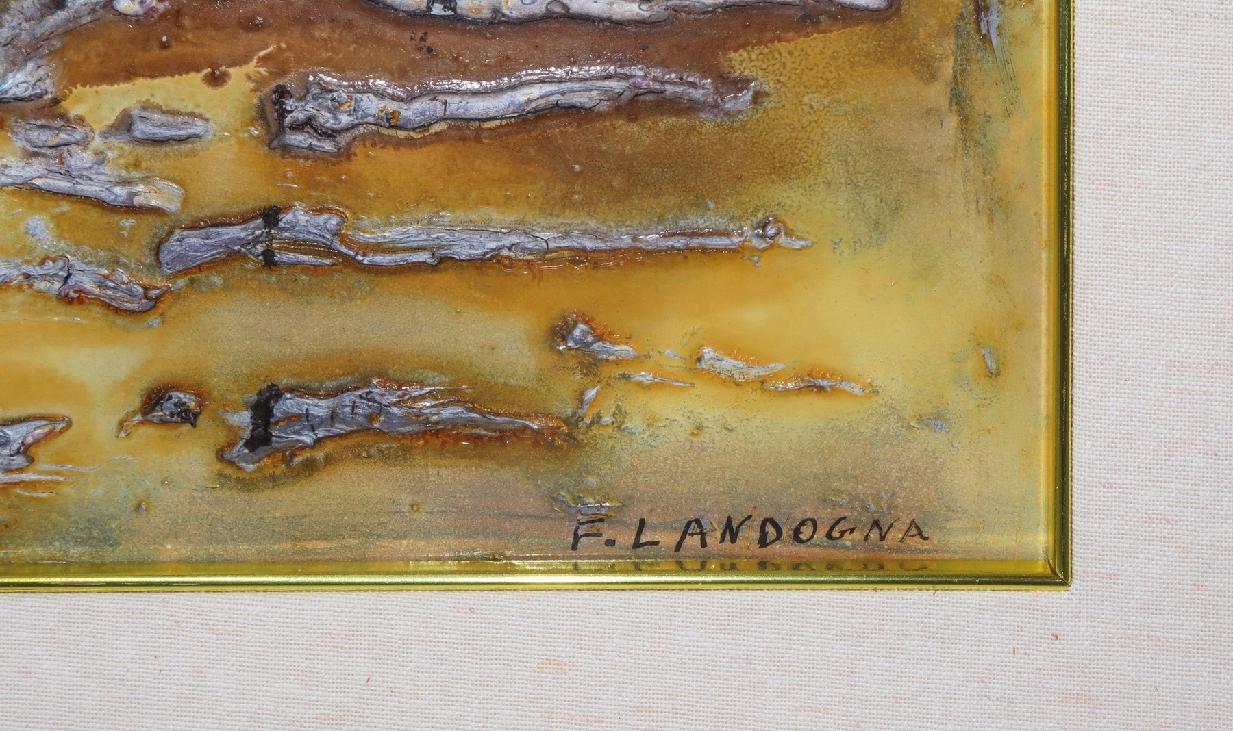 Paesaggio notturno astratto, 1978 cm 60 x 50, in cornice 75 x 65 Tecnica mista su tela Firmasto in basso a sinistra F. Landogna, firma e data 1978 sul retro al telaio