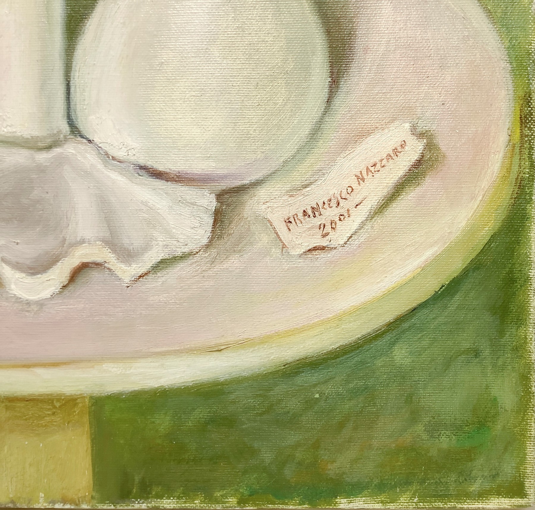 Francesco Nazzaro (Napoli 1921-2019) - Composizione bianca, 20° secolo H cm 50x40 Olio su tela Firmato e datato al fronte ed al retro, anno 2001. Etichetta Catania Art Gallery al retro, opera esposta nella mostra "Hello Napoli" (11.12.2019-11.1.2020)