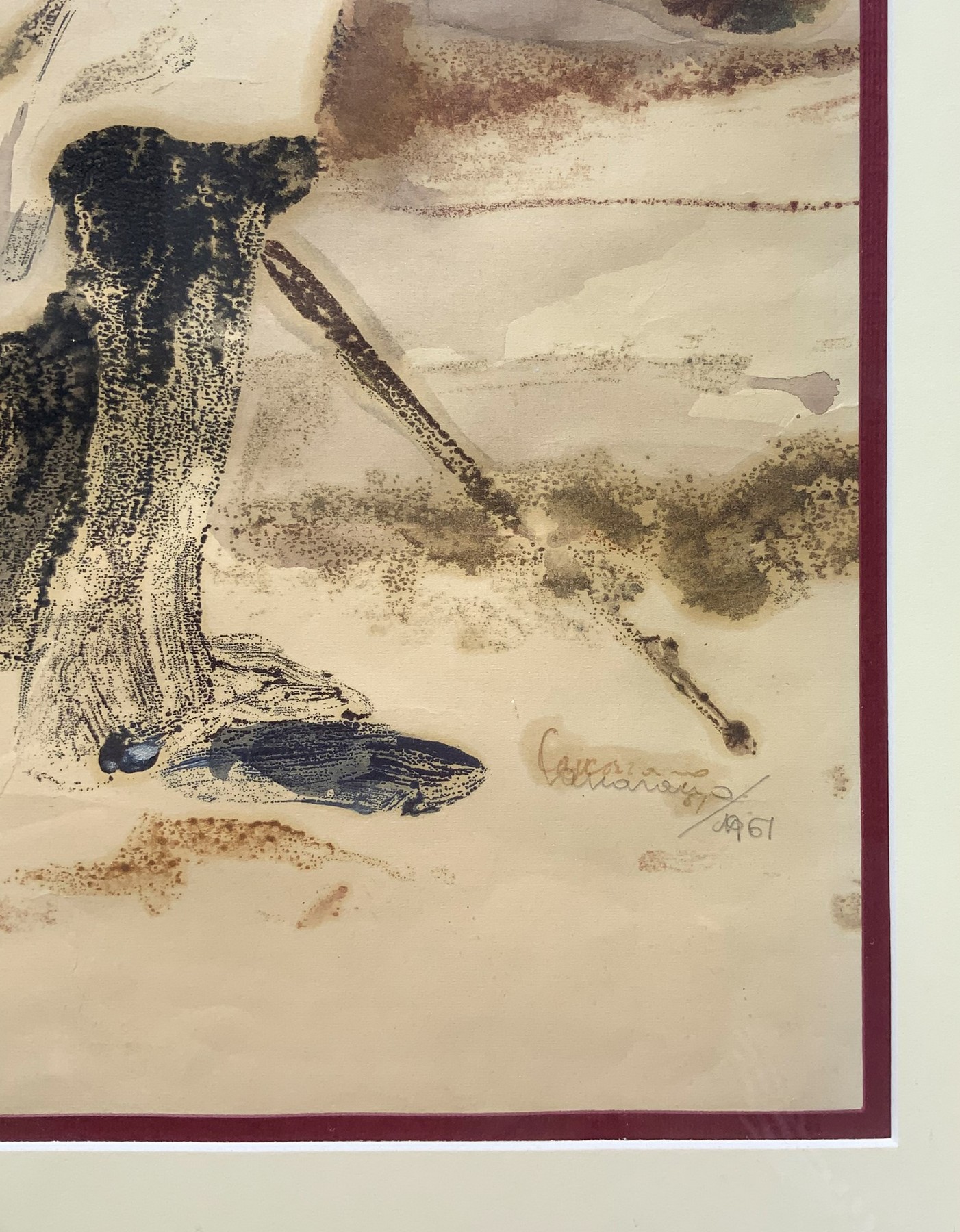Caucasiano Cm 45x35. Misure con la cornice in legno di noce cm 69x50 Gouache su carta Firmato e datato 1961 in basso a destra.