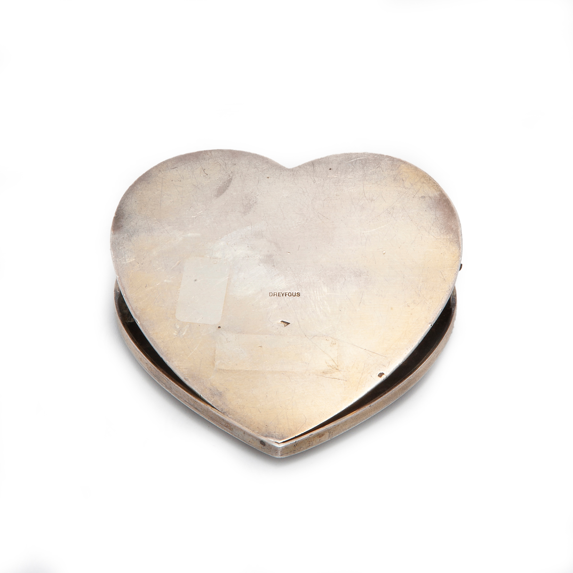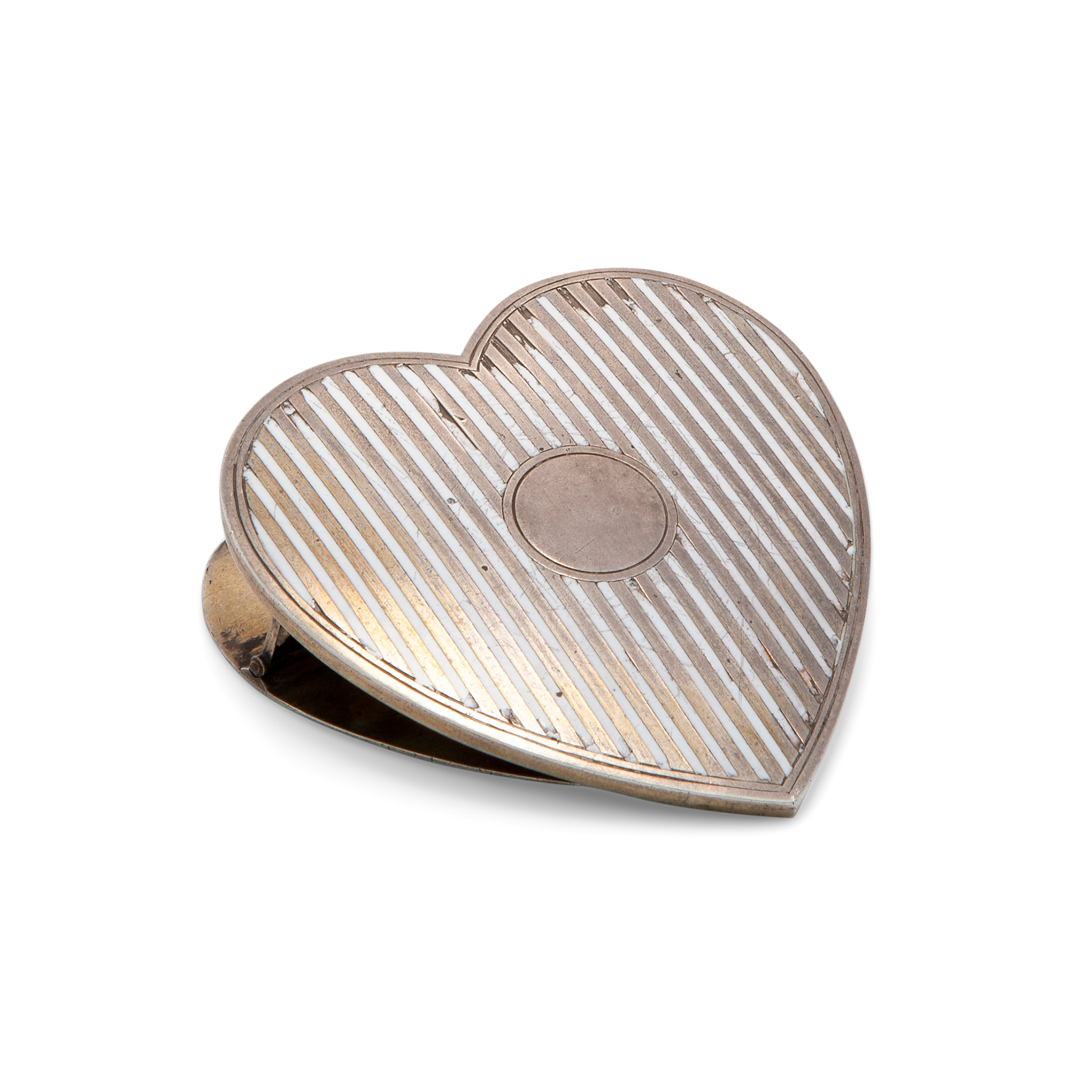 Molletta Liberty francese in forma di cuore Presenti timbri identificanti la produzione 'Dreyfous', il manufatto è realizzato in argento e smalti; peso complessivo gr. 60 Dimensioni 2x6x6 cm.