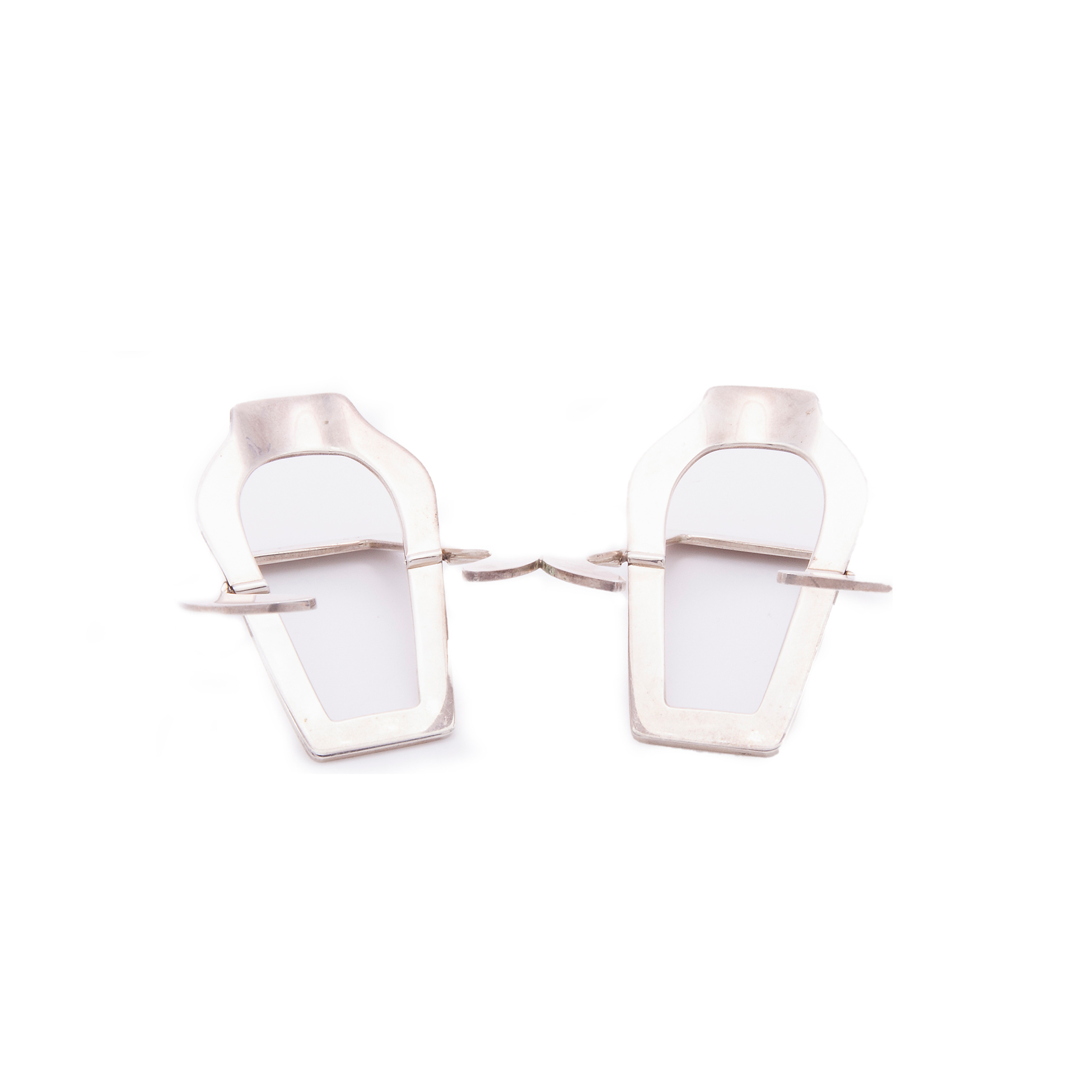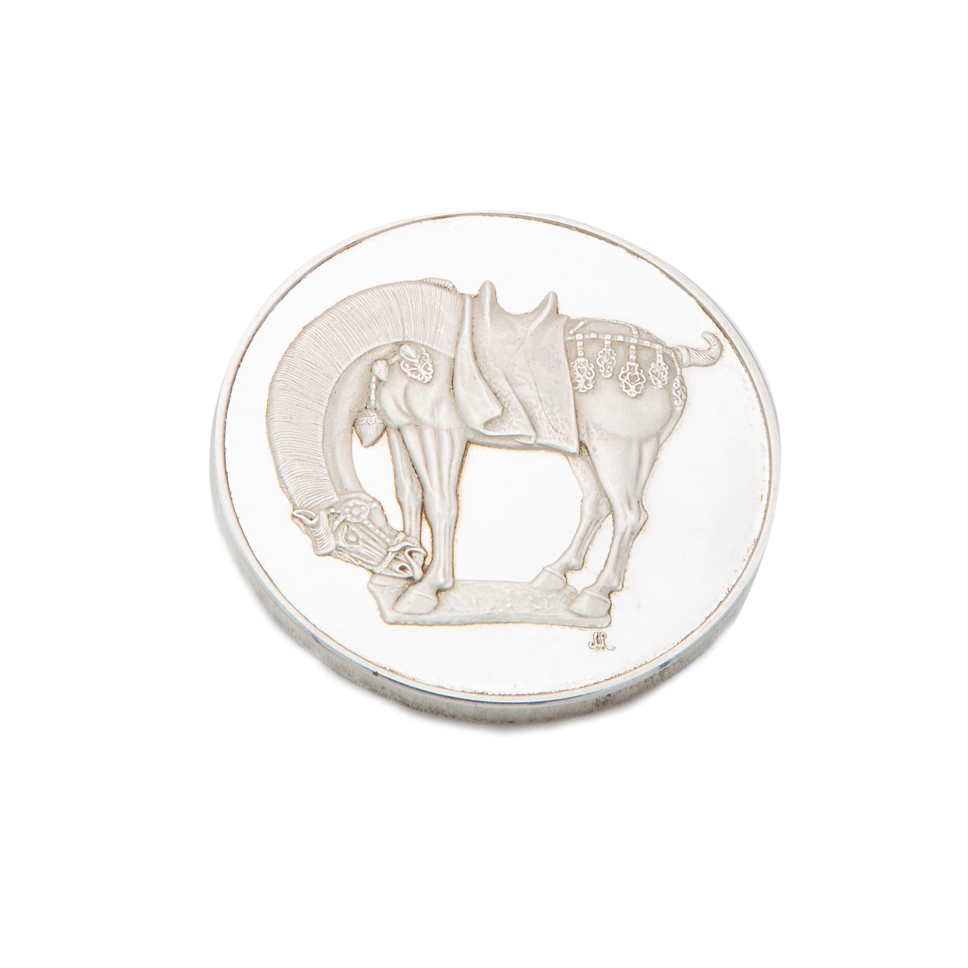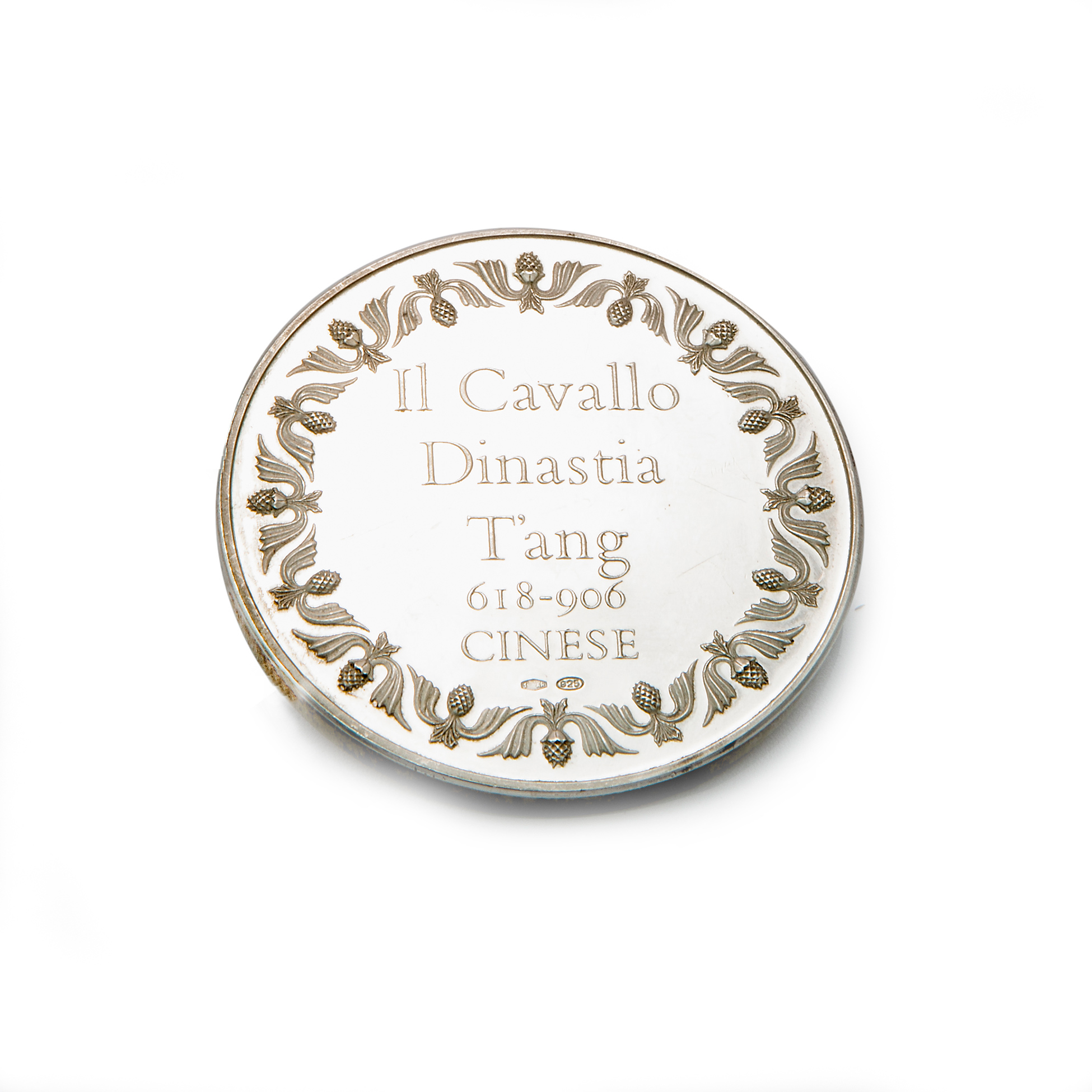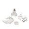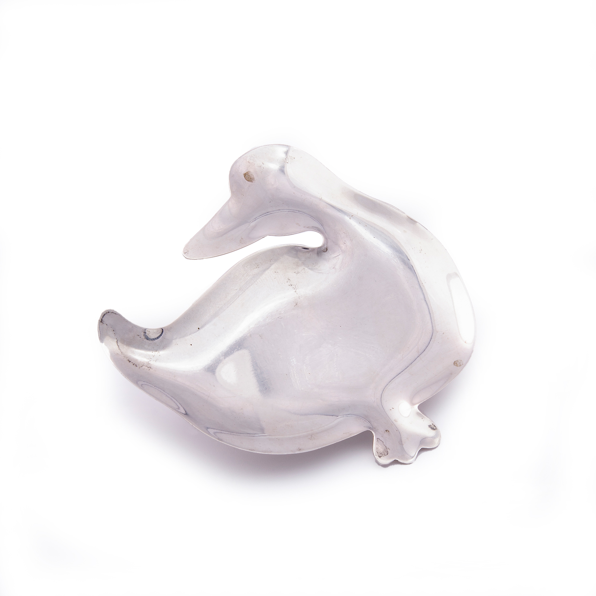 Set da scrivania in vetro e argento Gruppo composto da: un calamaio a cinque sfere in vetro e metallo dorato, un posacenere in argento in forma di anatra recante la firma 'Faraone Milano' -peso gr. 66 - e un reggi sigaretta da tavola in argento 925, peso
